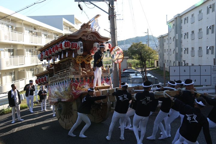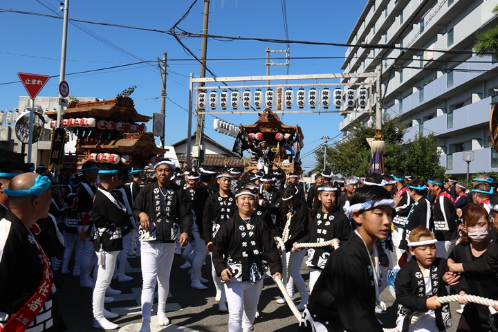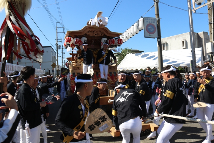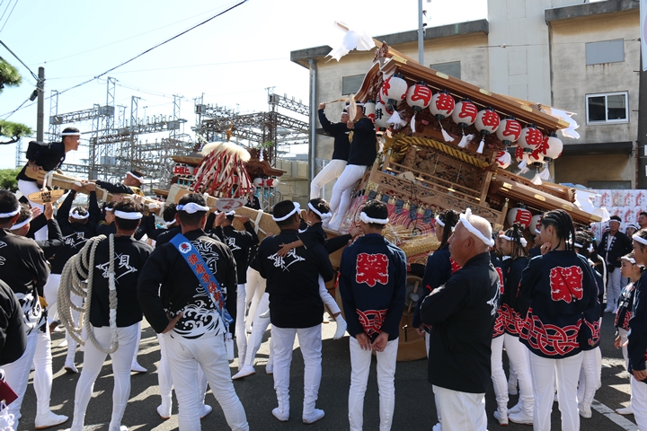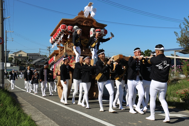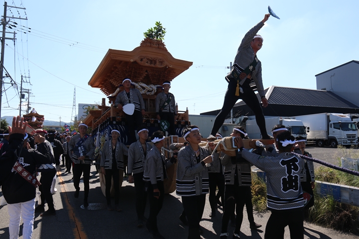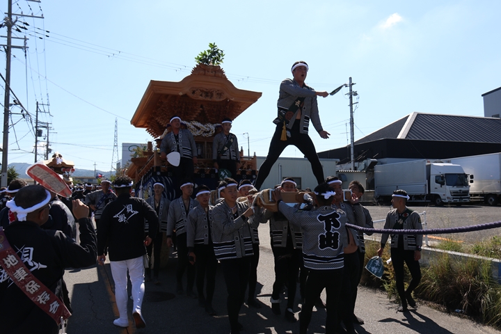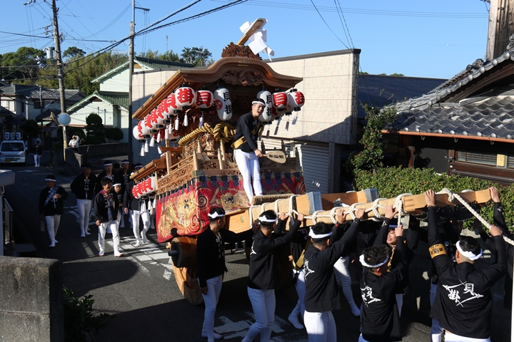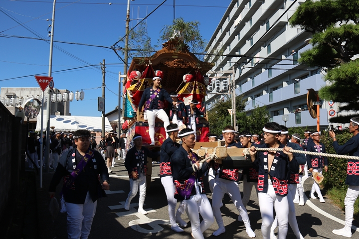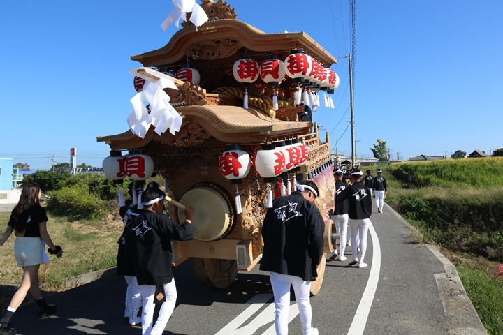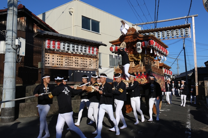 ![]() 続いて下出のやぐらです。ここで他町のやぐらとすれ違うのは 平成22年以来14年ぶりです。 |