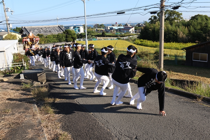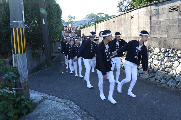 ![]() 波有手組役員の挨拶の後、波有手組を先頭に波太神社へ向かいます。 |