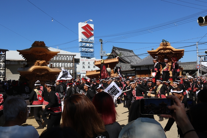 ![]() 〆縄前には既に西鳥取・貝掛地区のやぐらが待機しています。 |
