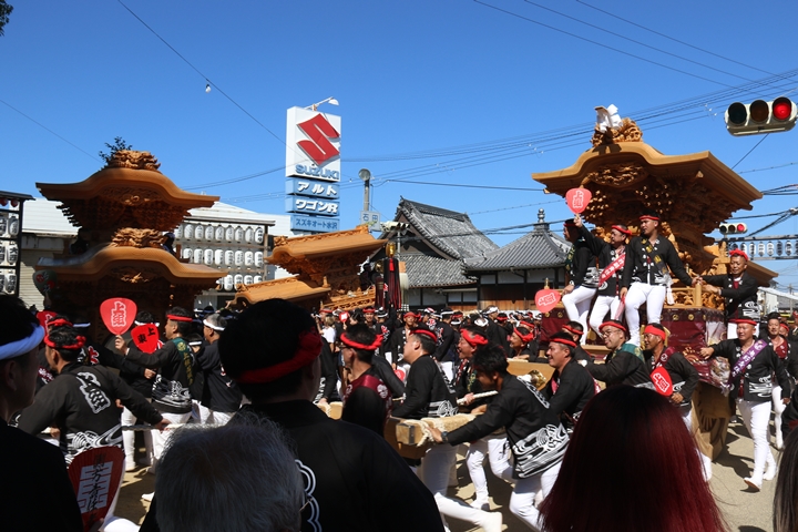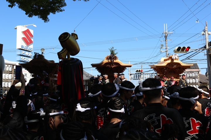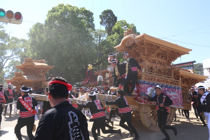 馬場先では自然田地区のやぐらが小まわりまっせーしていました。 |