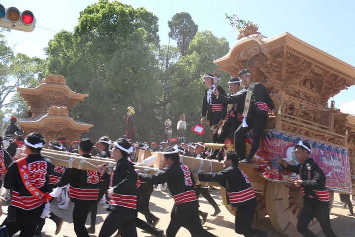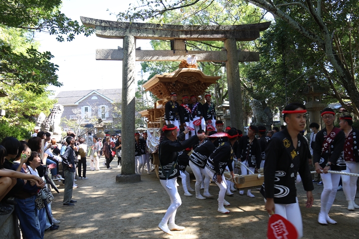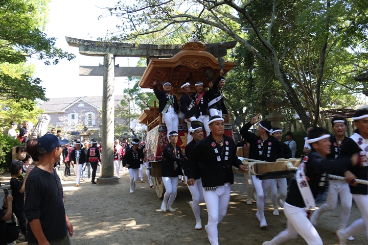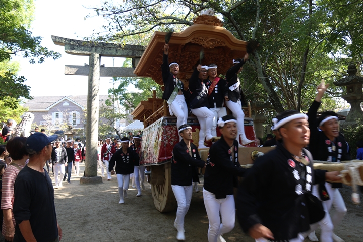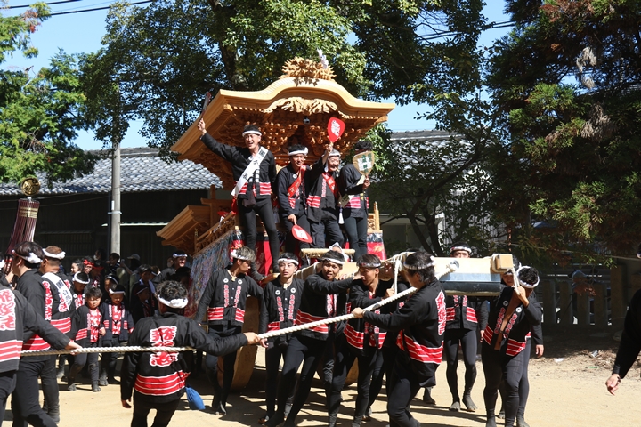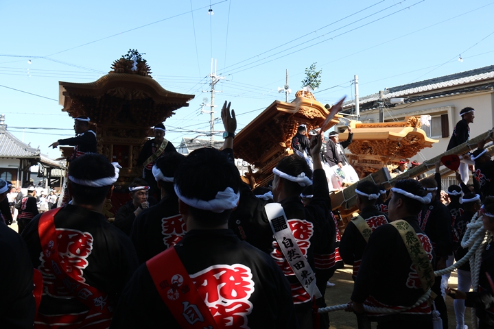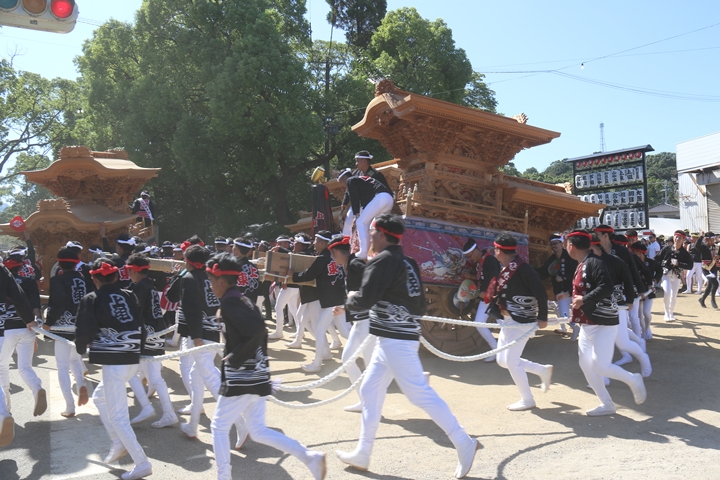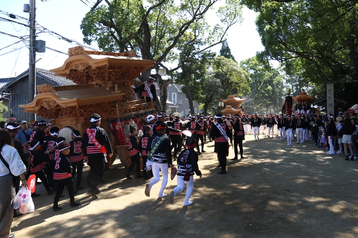 ![]() 最後に自然田東組のやぐらが宮上がりします。 |