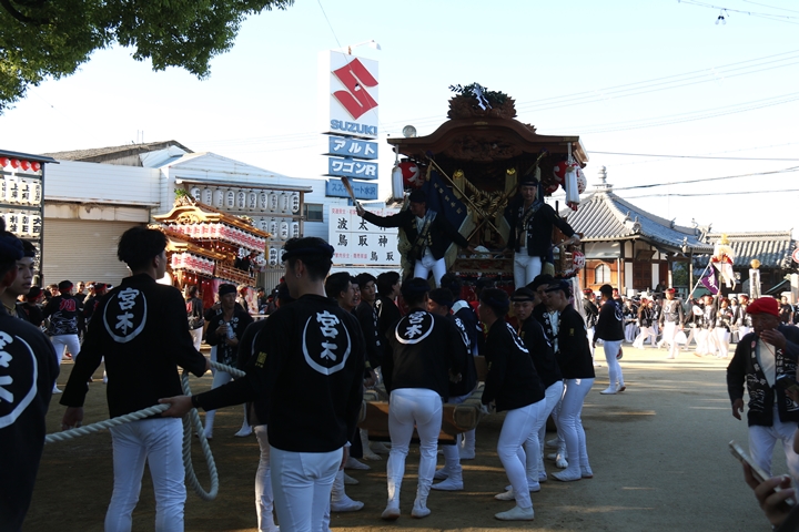 | ◎ 自町やぐら曳行の記録 指出森神社 → (村中1周) → 和泉学園 → 鳥取ノ荘駅北改札前(波有手組,西鳥取上組,榮組と合流) → 波太神社(西鳥取上組,榮組,新町とまっせー・五町イベント) → ぶんすけ前 → 貝掛団地 → ぶんすけ前 → 箱作駅ロータリー(箱作東,箱作西とまっせー) → (府道752号線経由) → (村中1周) → 指出森神社 |