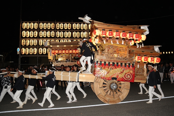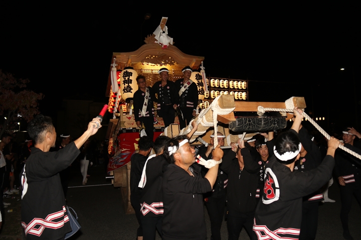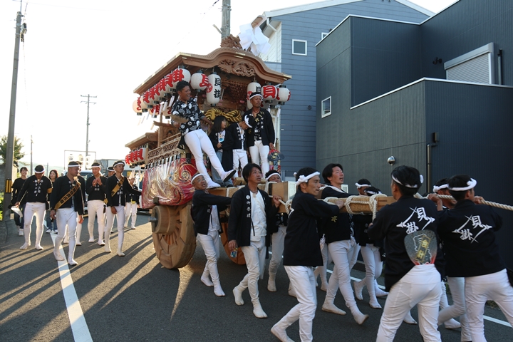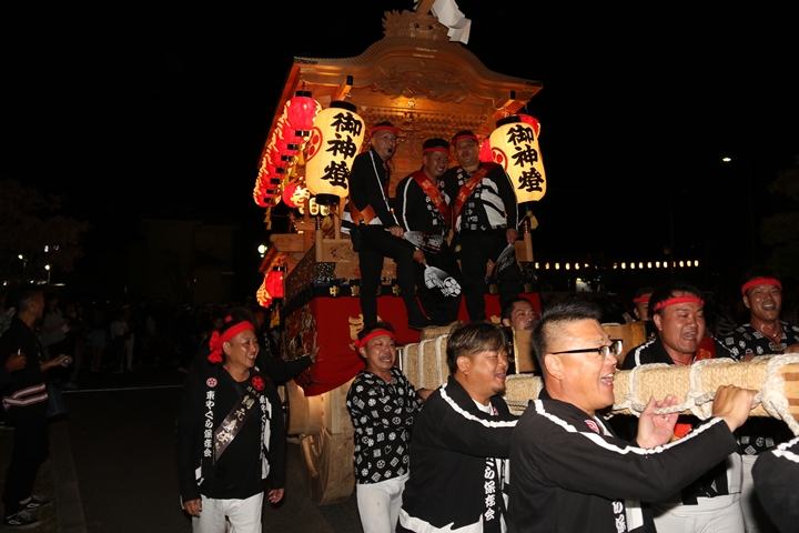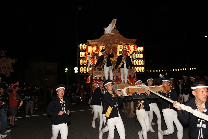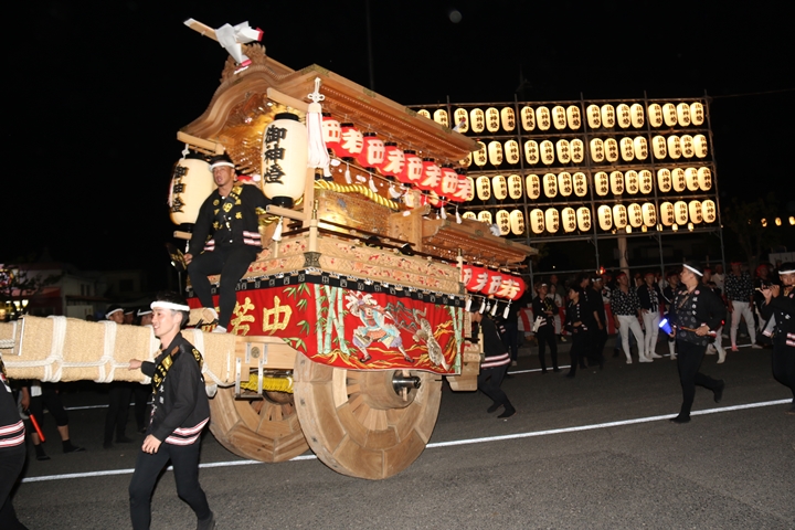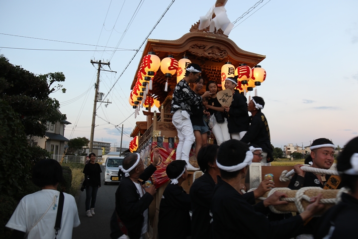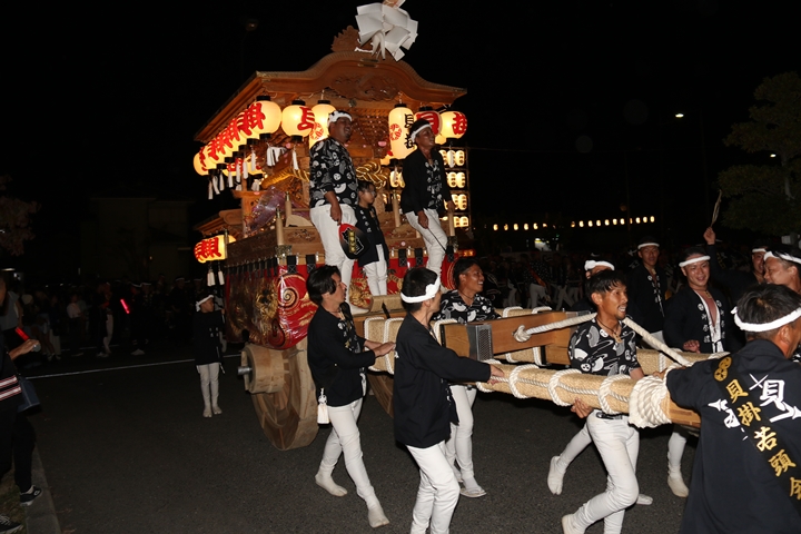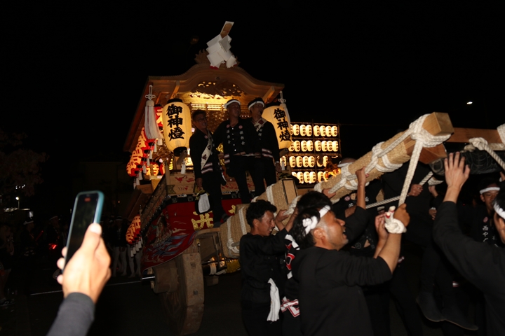![]() 帰町し村中を一周ところ曳き。 |