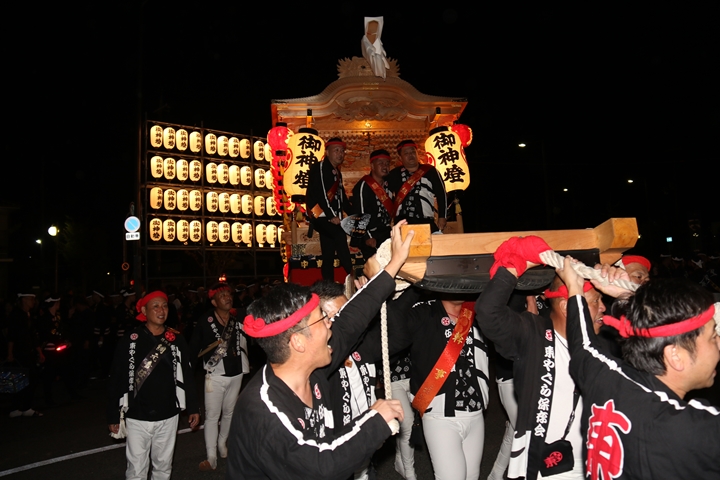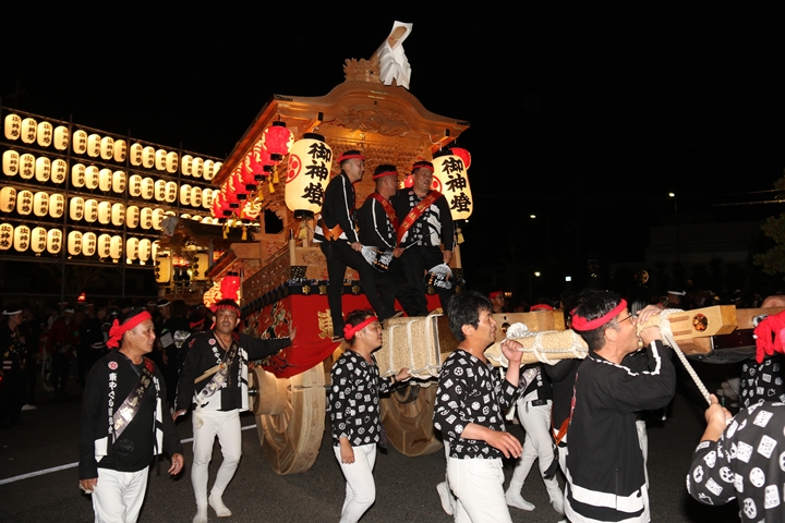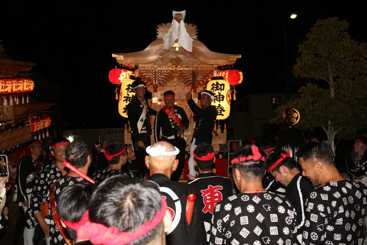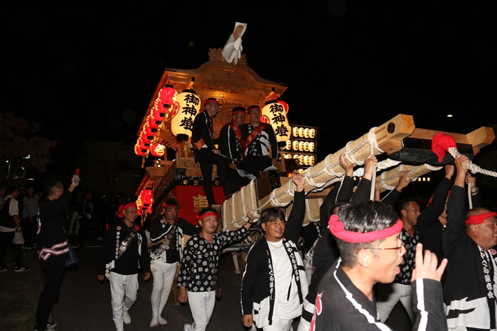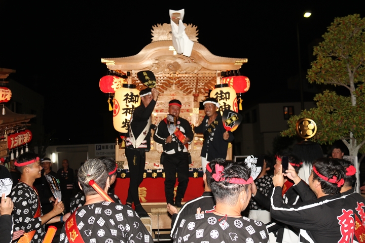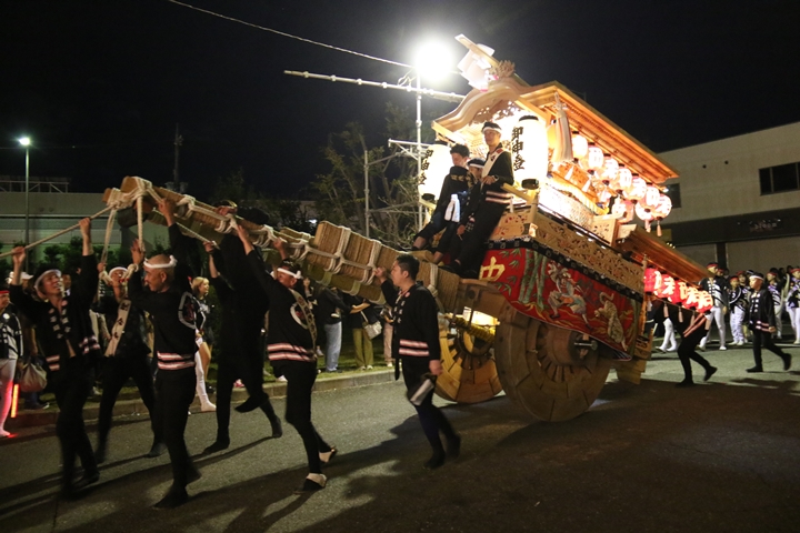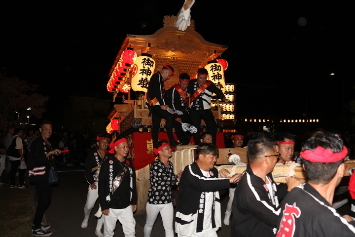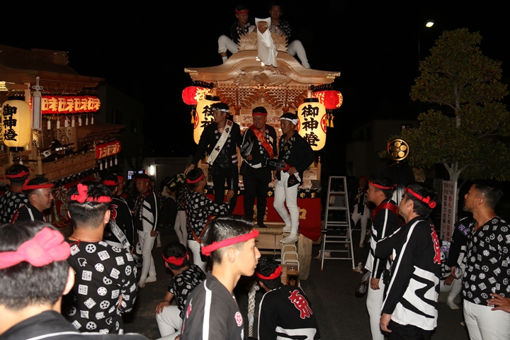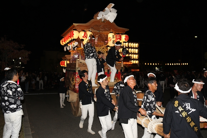 ![]() 帰町し村中を一周ところ曳き。 |