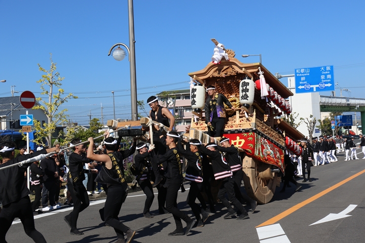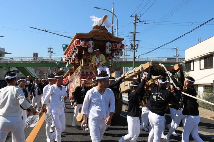 ![]() 7時45分、役員の挨拶を終え曳行開始。 |