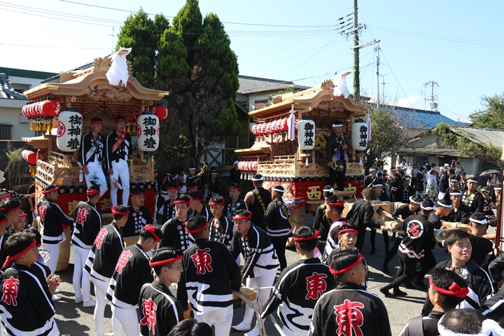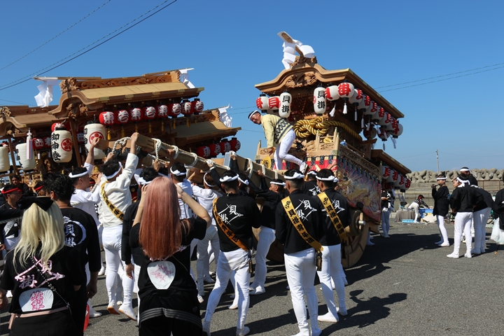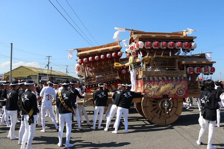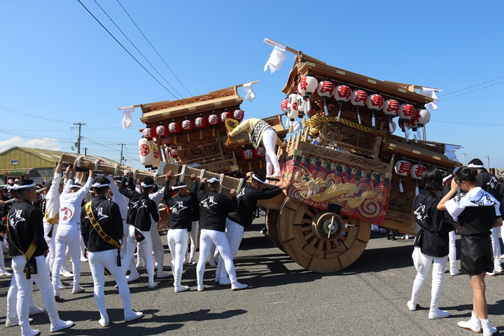 ![]() まずは村中を二周ところ曳き。 |