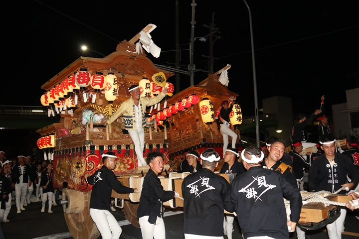![]() 貝掛へ帰町し村中を一周ところ曳き。 |