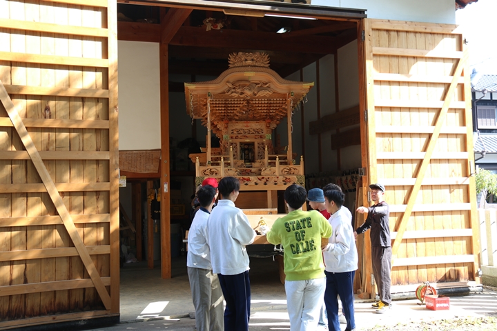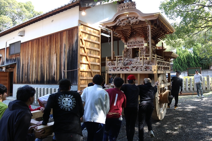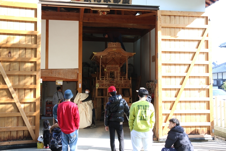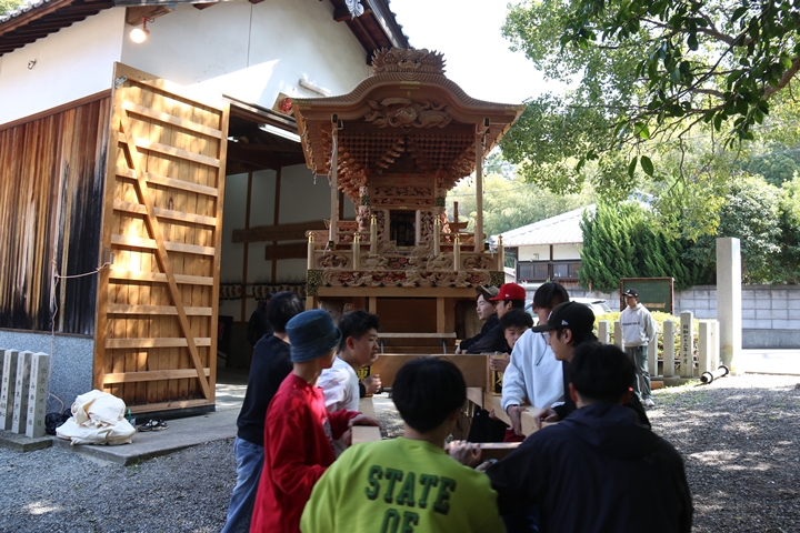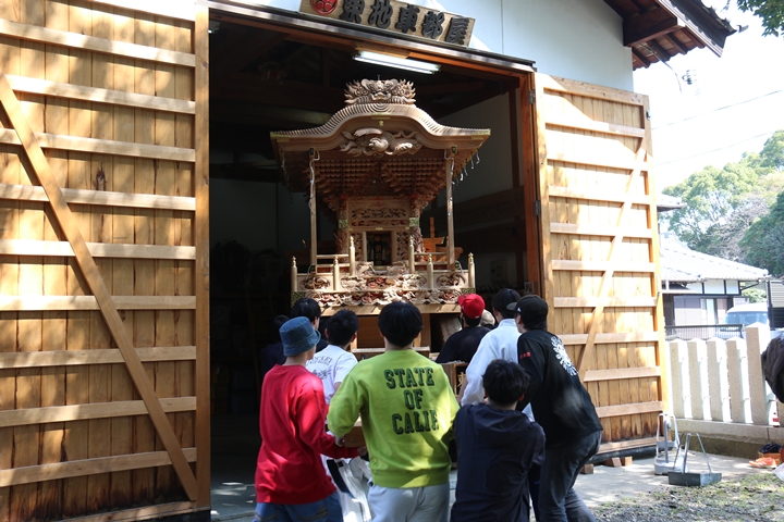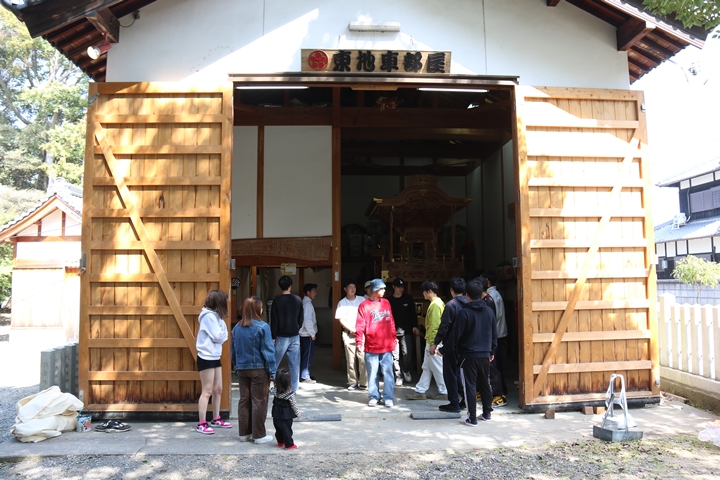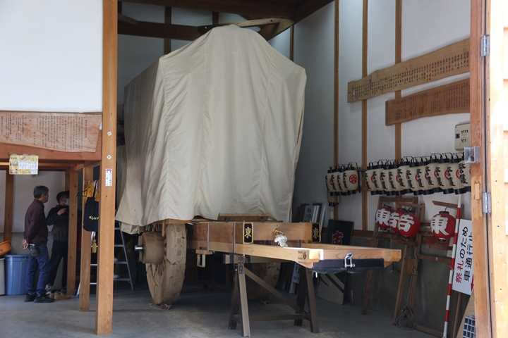 9時前に菅原神社に到着、やぐらはまだやぐら部屋の中でした。 |