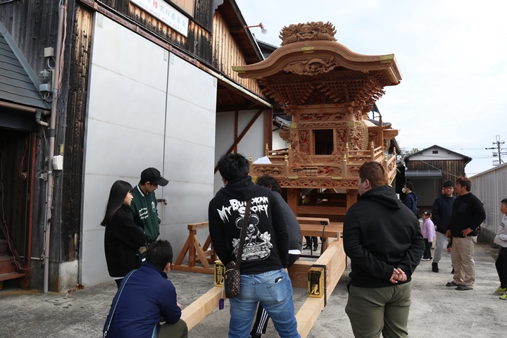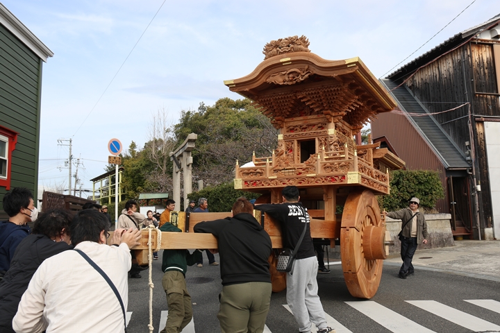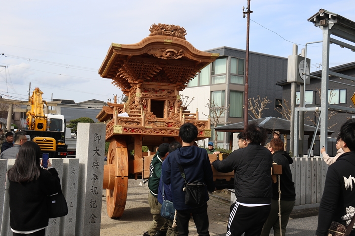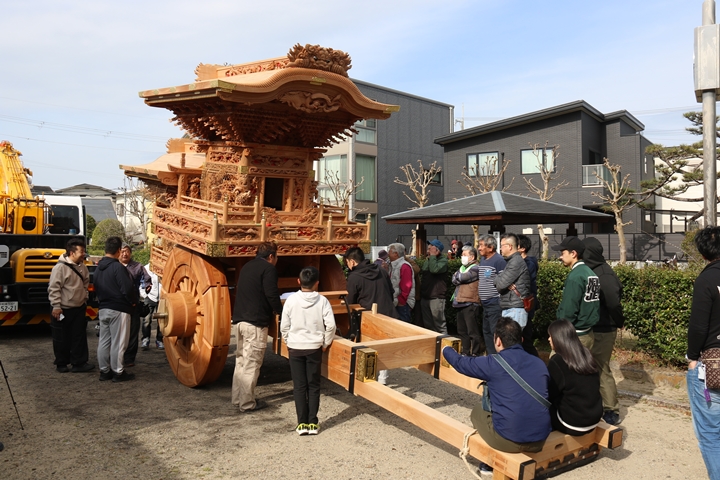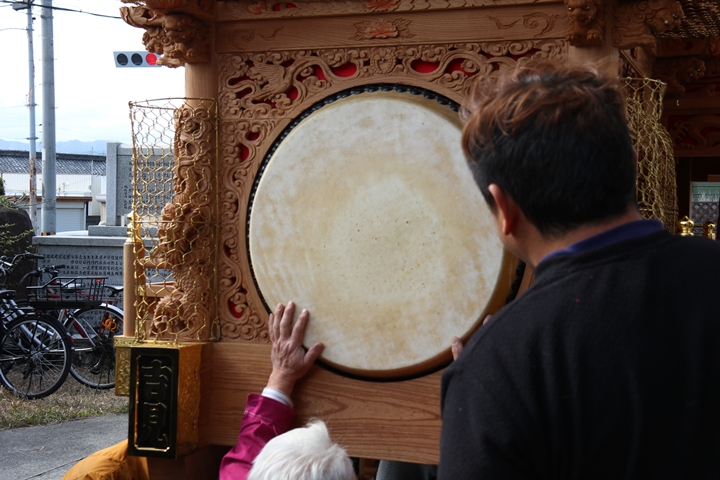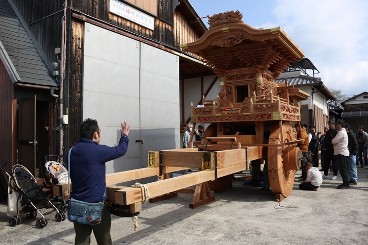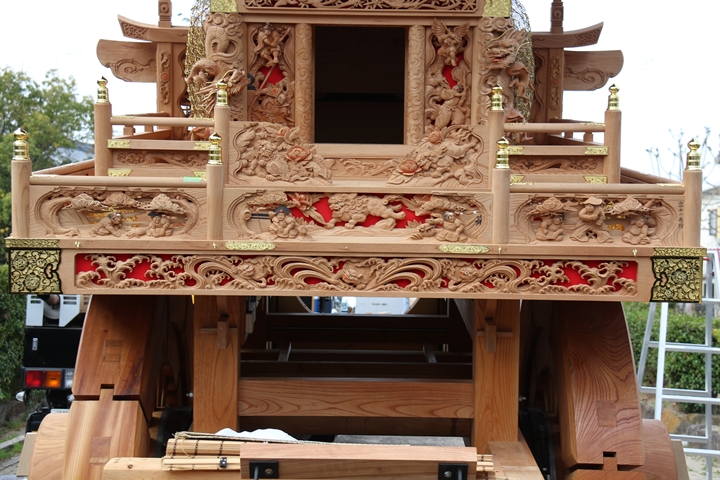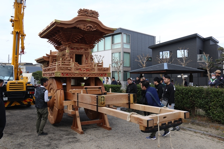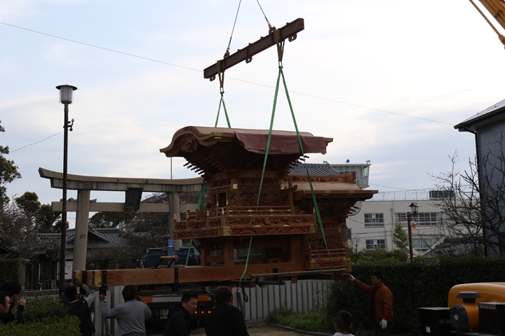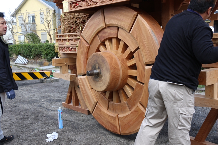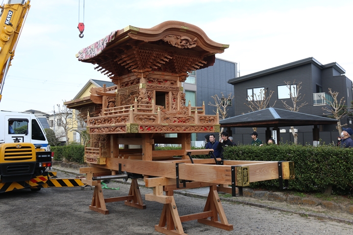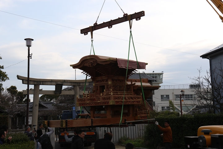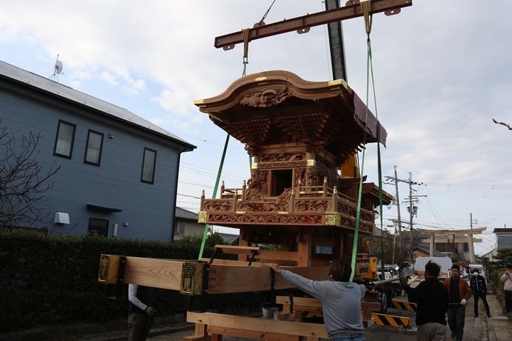 | 昨年11月17日日曜日に大真工務店へ搬出された吉見のやぐらが帰町するとの情報を得、行ってきました。8時頃に帰町するとの事だったので7時過ぎに自宅を出発しました |