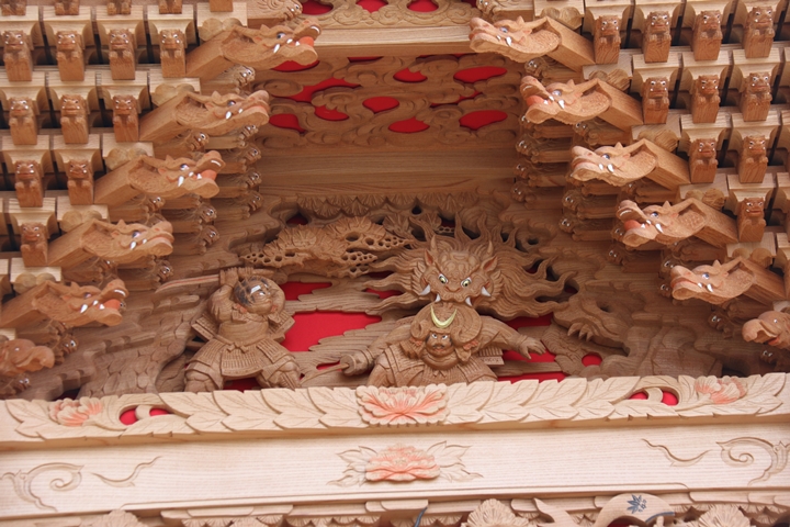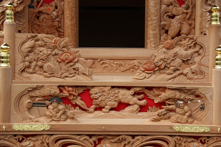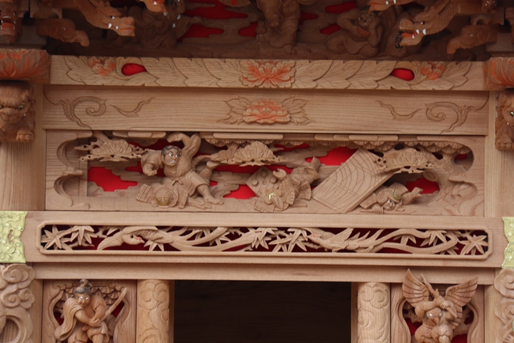 ![]() 作業の合間に色々彫物撮影させて頂きました。 【大屋根正面】 (正面より向かって) |