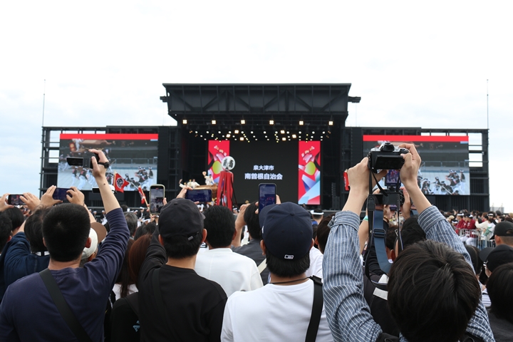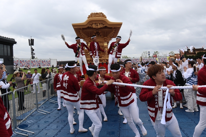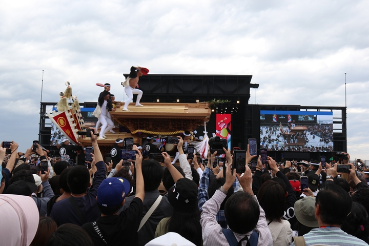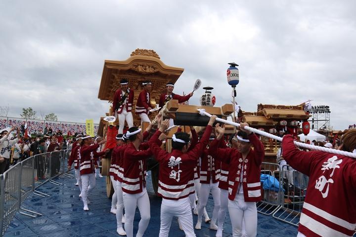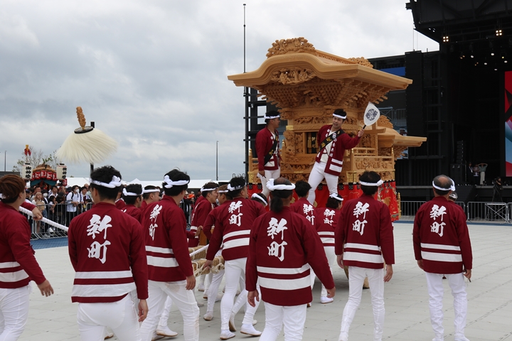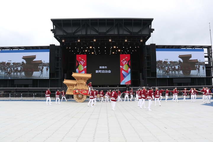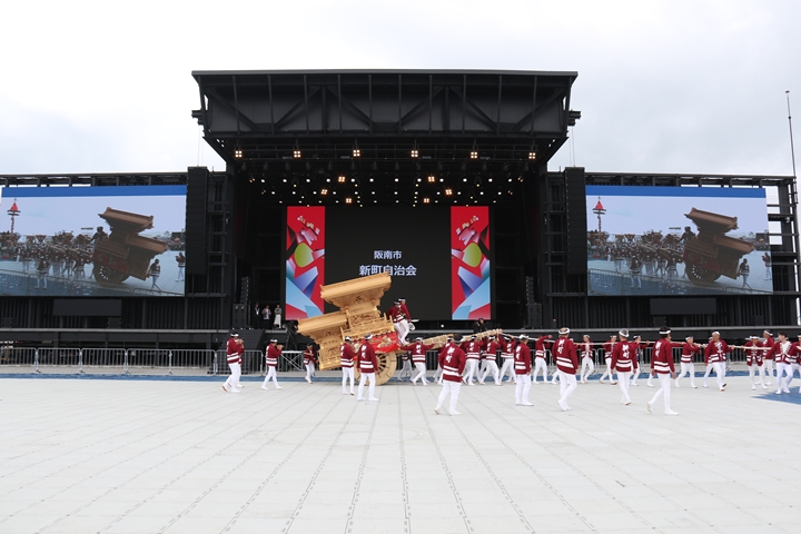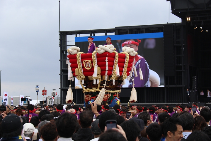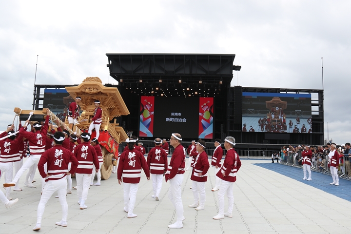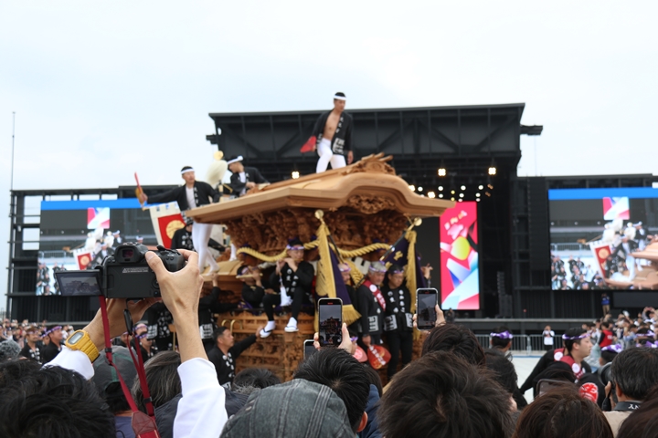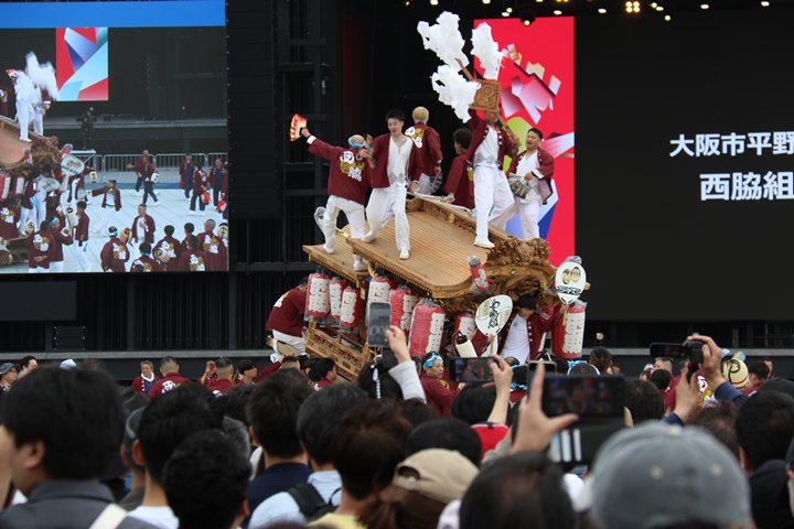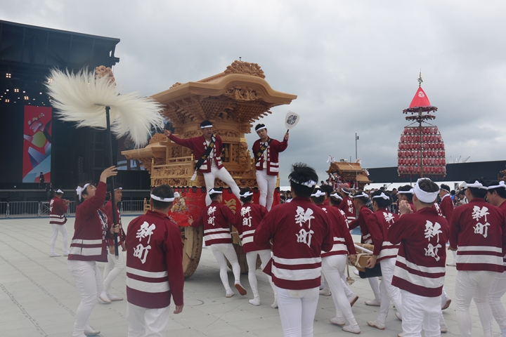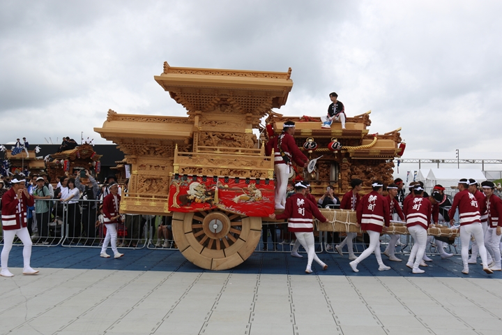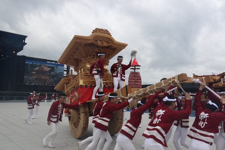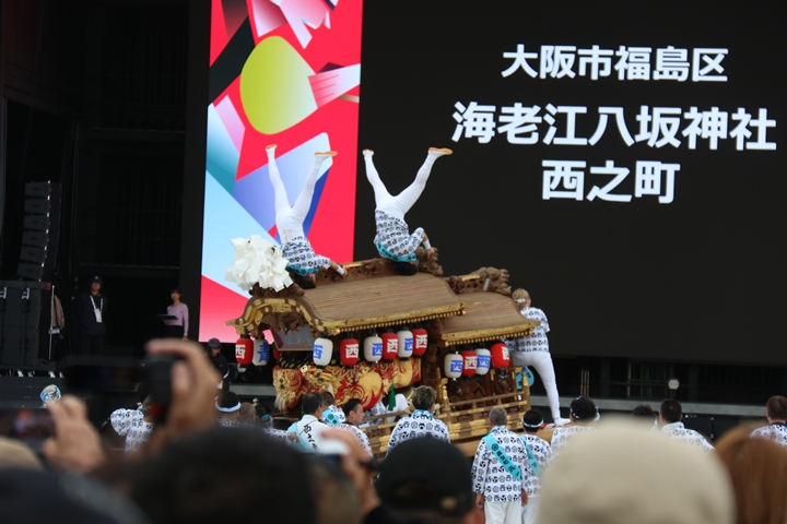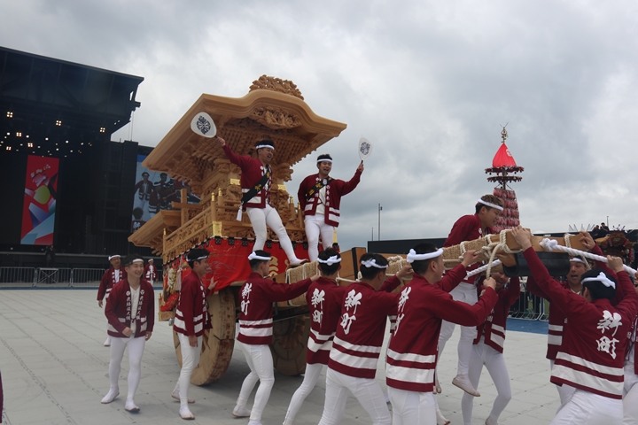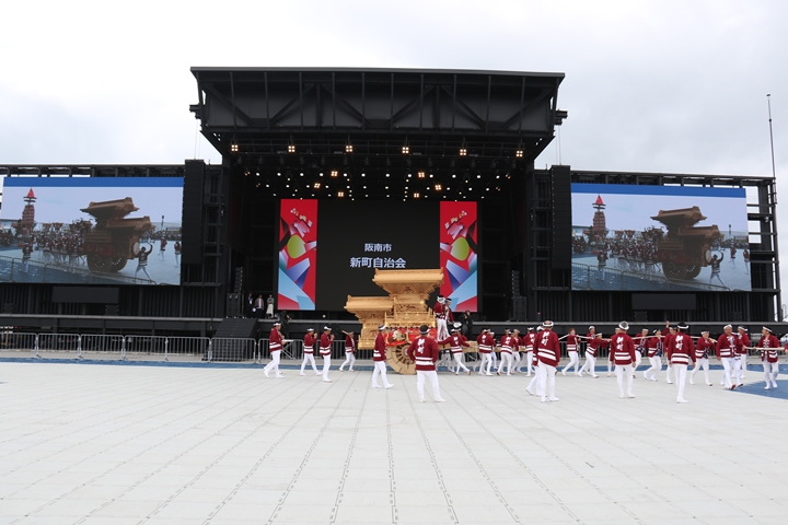![]() 実演エリアでは大阪市住之江区・住吉区 高崎神社布団太鼓保存会の布団太鼓。 |