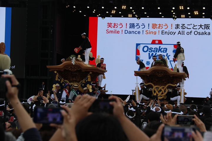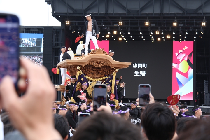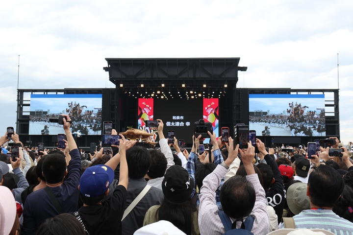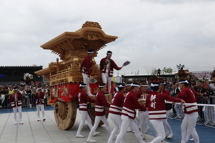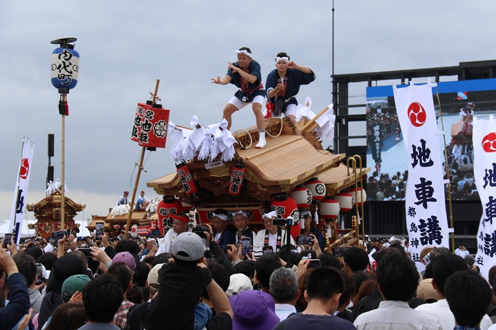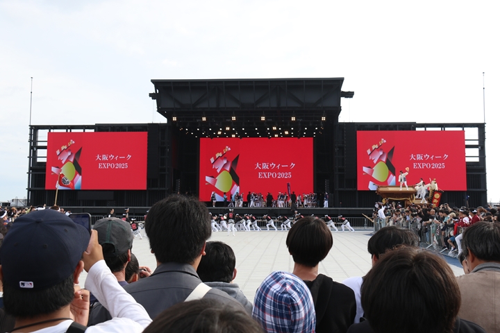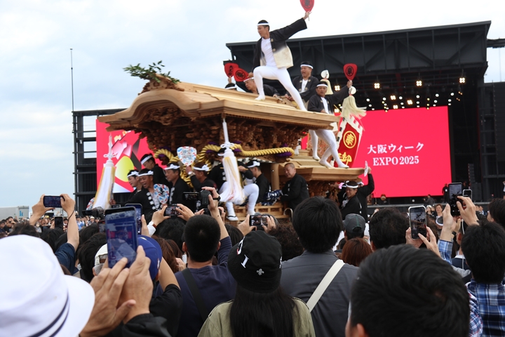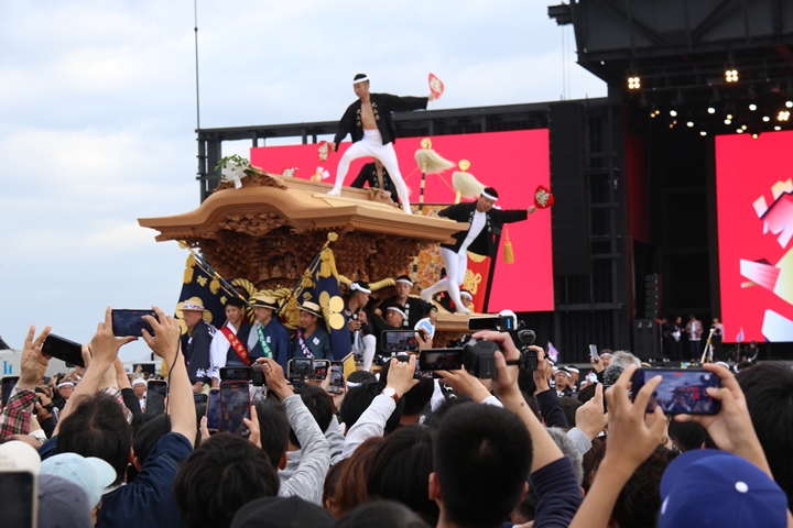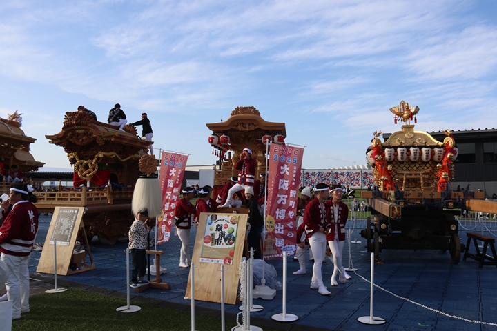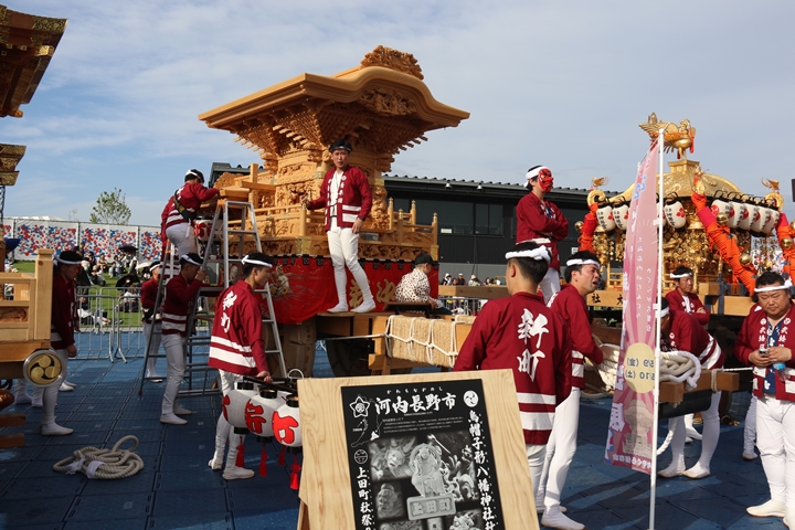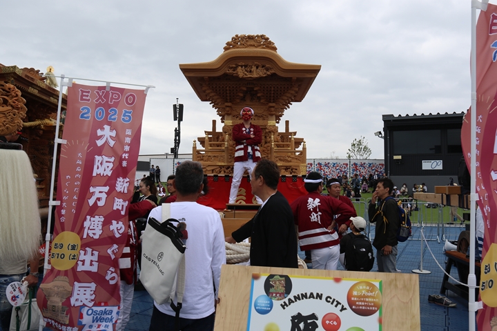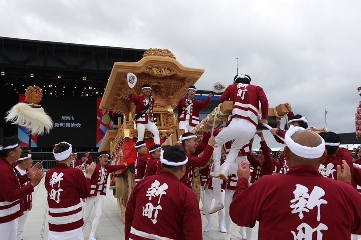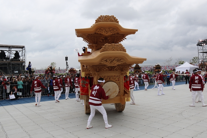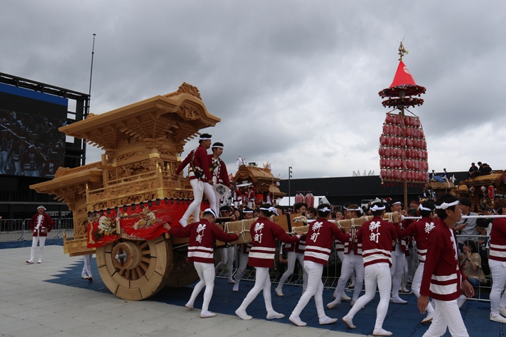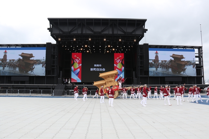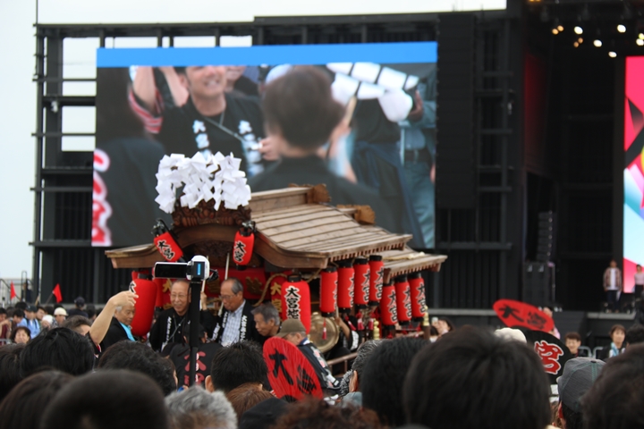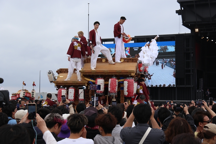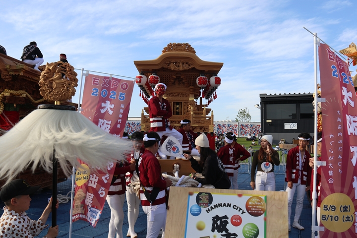 ![]() 実演エリアでは大阪市住之江区・住吉区 高崎神社布団太鼓保存会の布団太鼓。 |