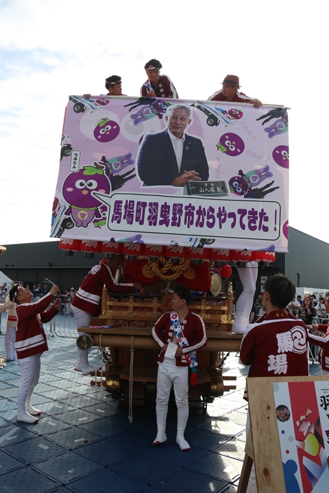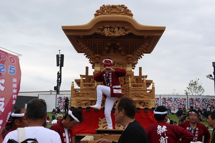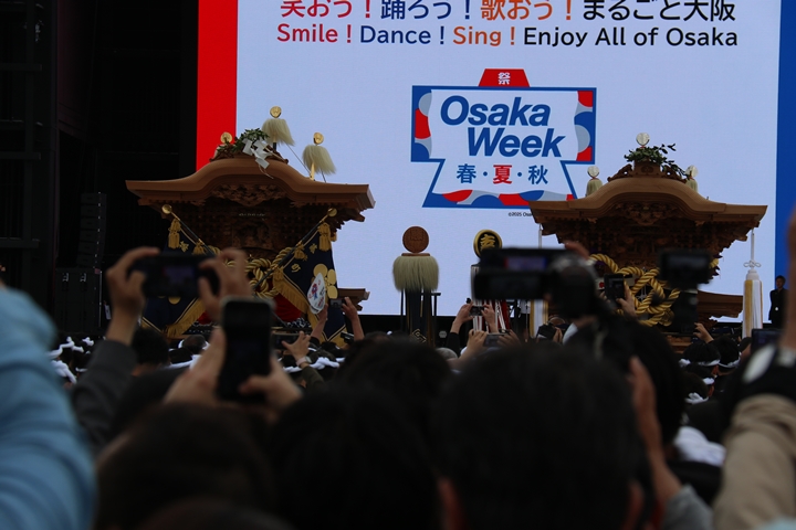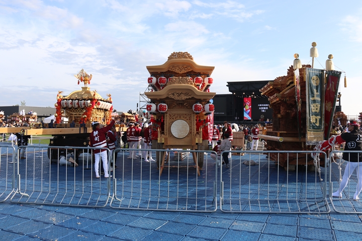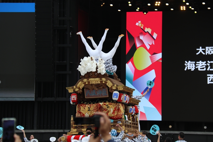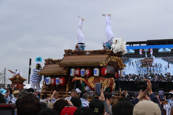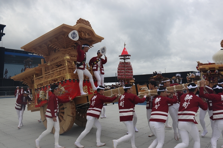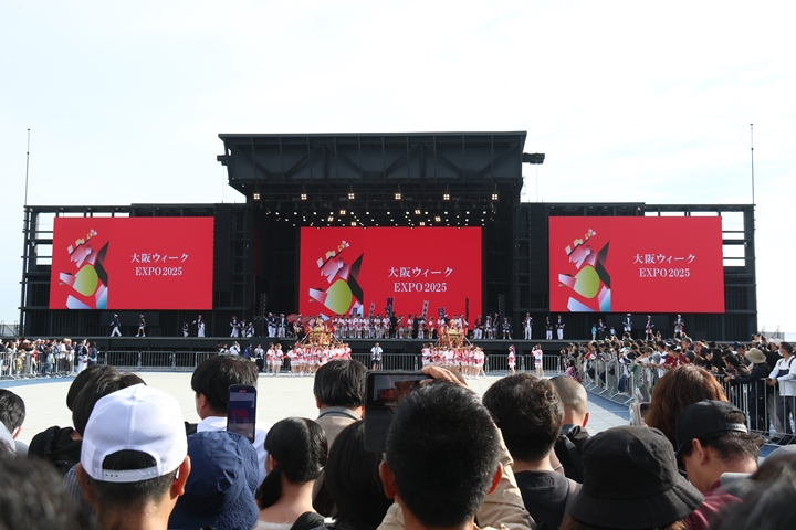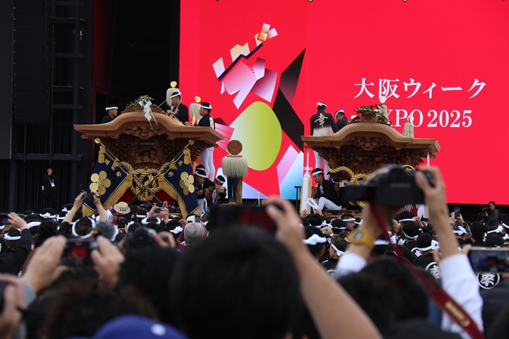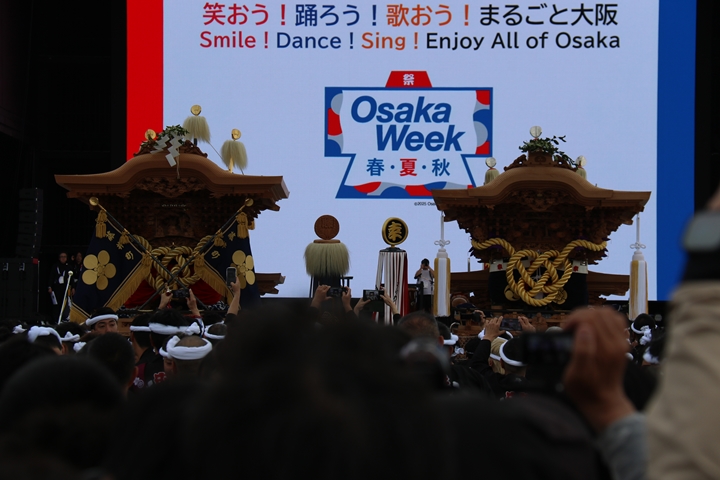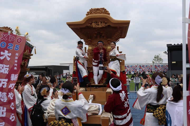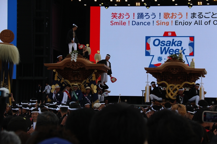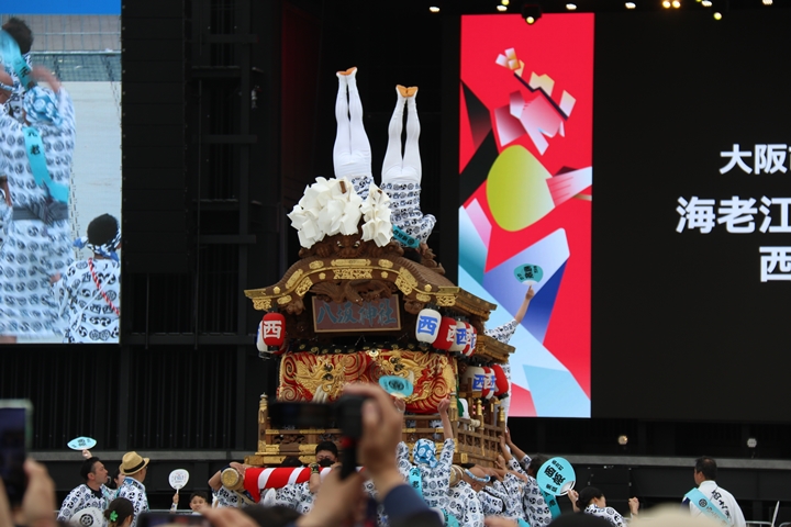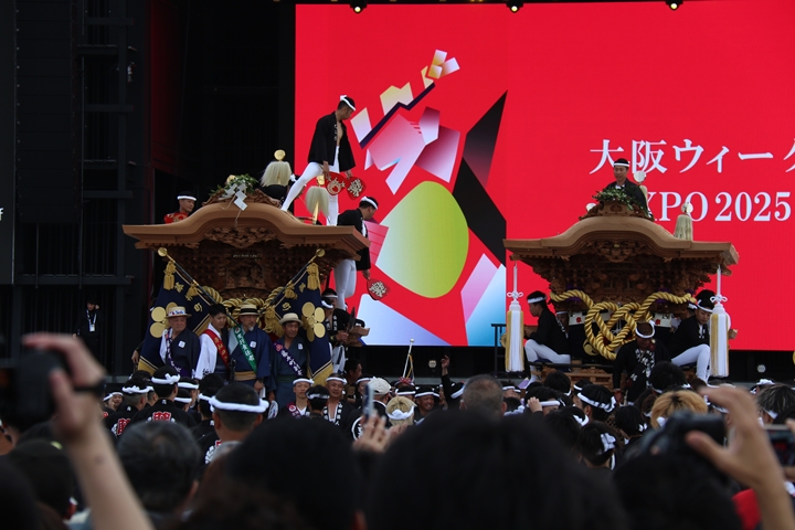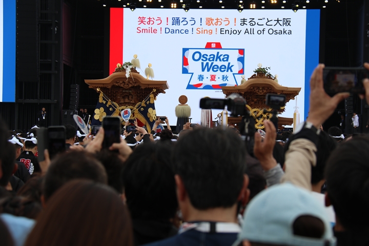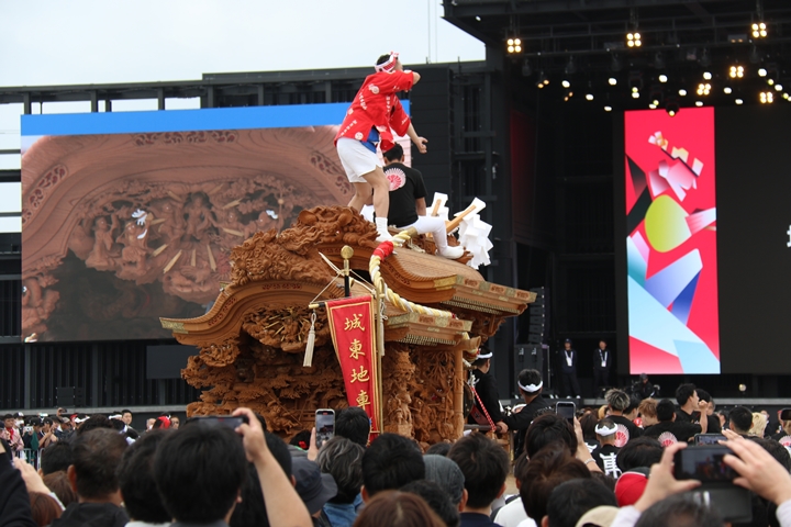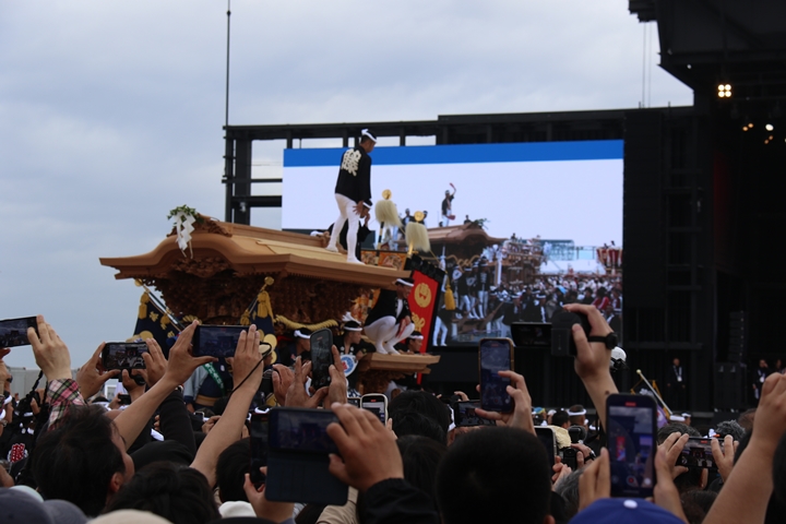 ![]() 実演エリアでは大阪市住之江区・住吉区 高崎神社布団太鼓保存会の布団太鼓。 |