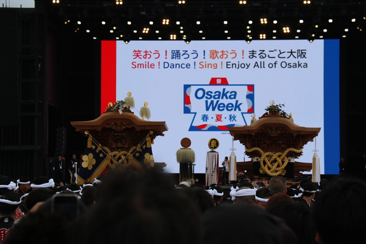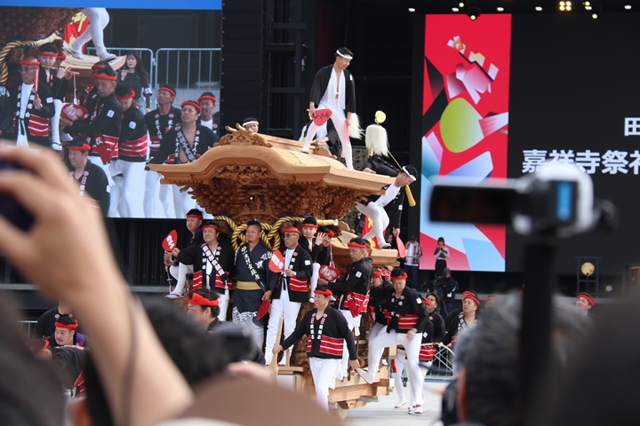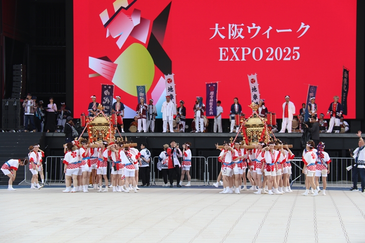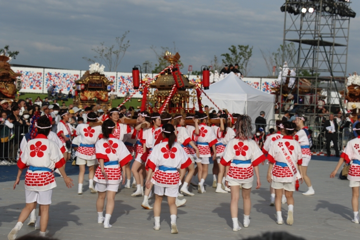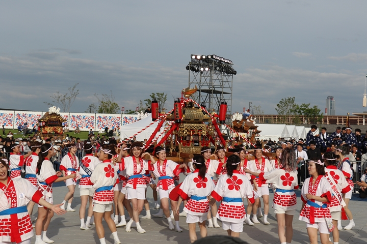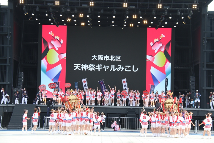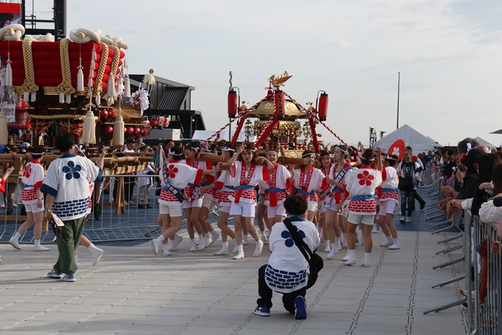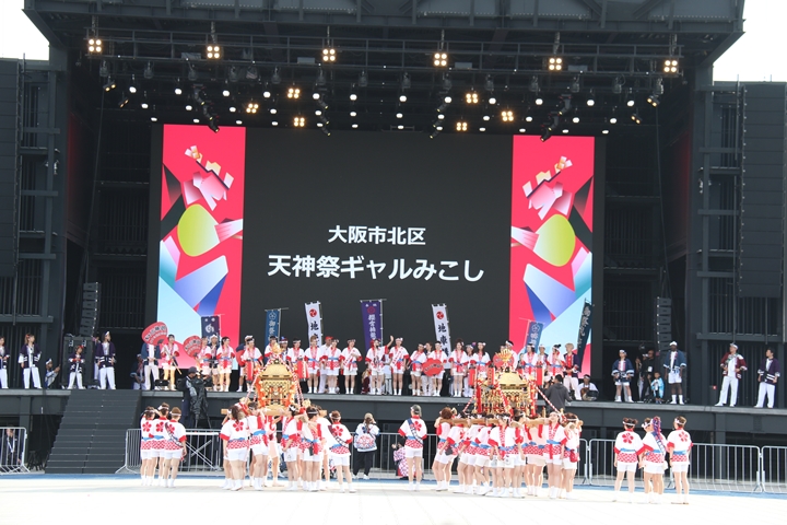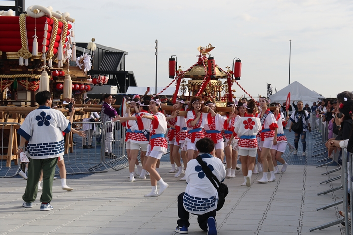 ![]() 実演エリアでは大阪市北区天神祭のギャルみこし。 |