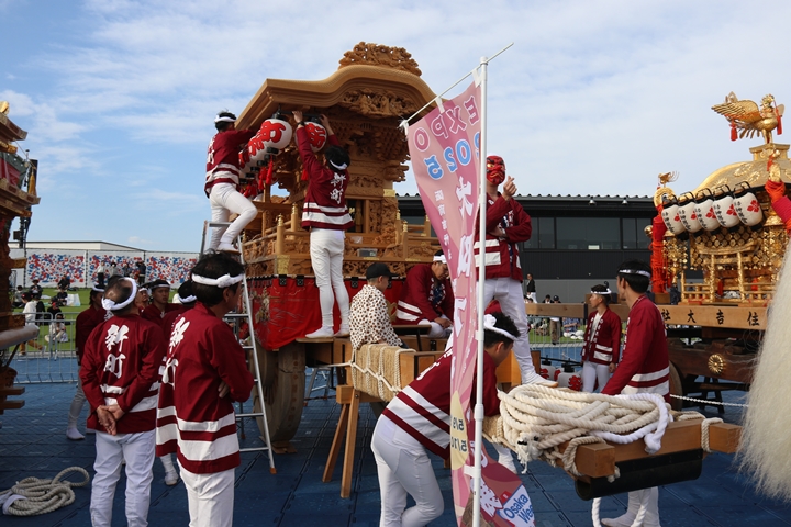 ![]() そして昼食を終え実演エリアでは泉佐野市大木町会担いだんじり。 |