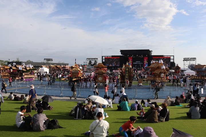 ![]() EXPOアリーナの芝生エリアにも人が集まってきました。 |