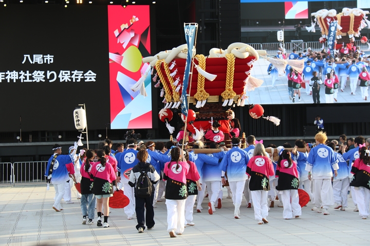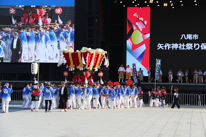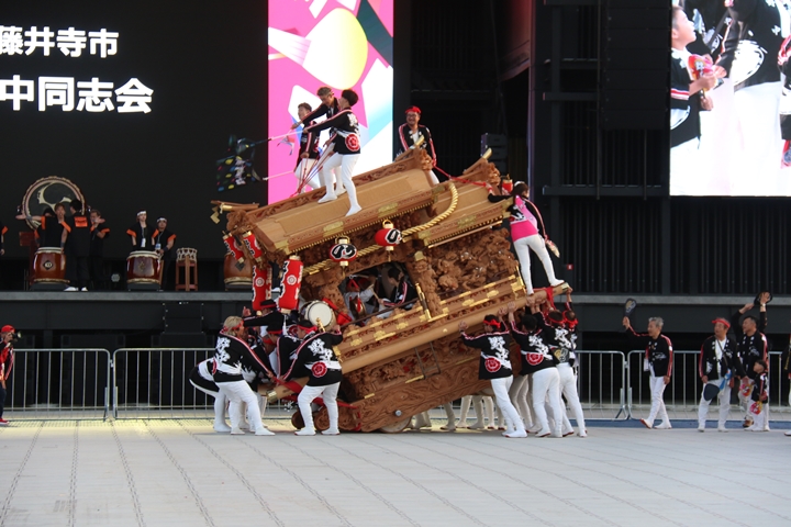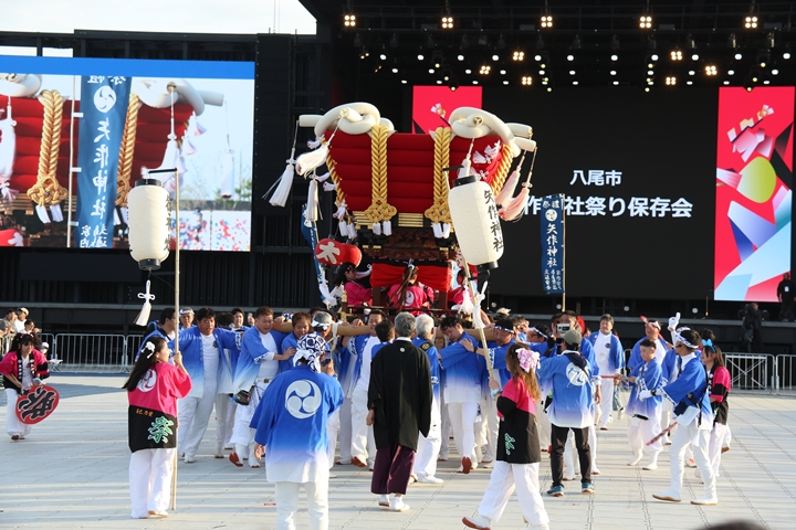 ![]() 続いて八尾市矢作神社祭り保存会の太鼓台。 |