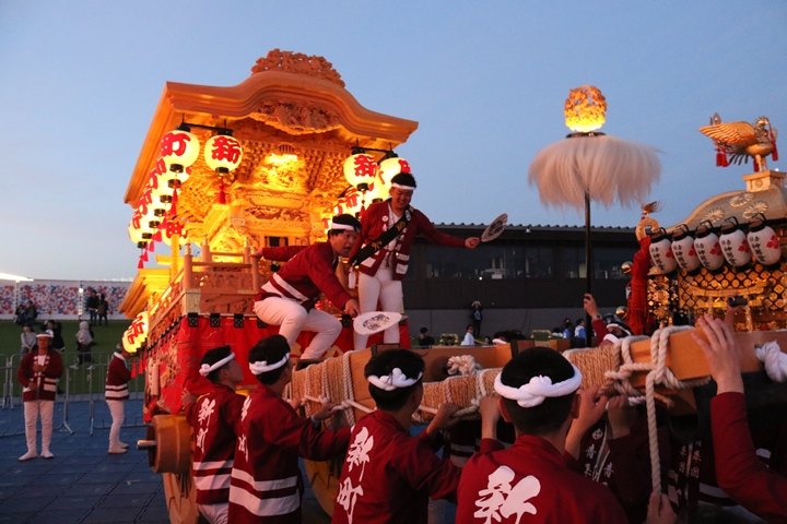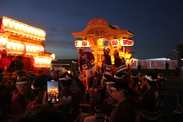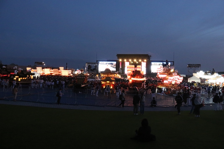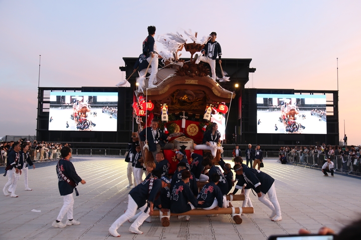| あっと言う間に過ぎた2日間、正直時間を持て余すのではないかと思っていましたが盛りだくさんの内容で万博会場を散策する時間がありませんでした。ともあれ大阪府内40台のだんじり・やぐら・太鼓台等が集まるのは恐らく初めての試みではないかと思います。エエ思い出になりました。新町関係者様方、部外者の私をお招きいただき本当にありがとうございました。 |