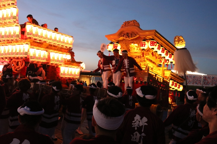 ![]() その頃新町は提燈に明かりが点りやぐらをしこっていました。 |