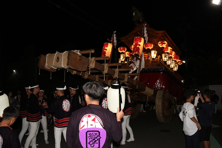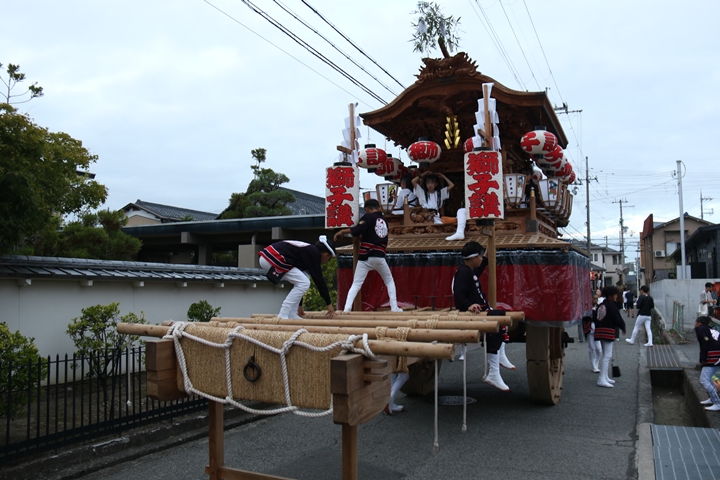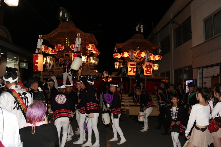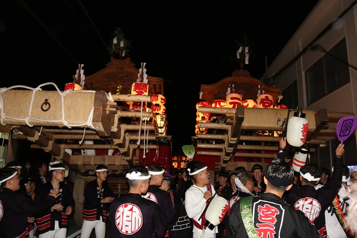 ![]() 獅子講と宮元講のやぐらが並びました。 |
