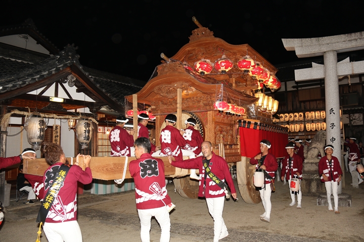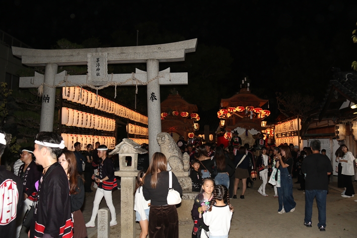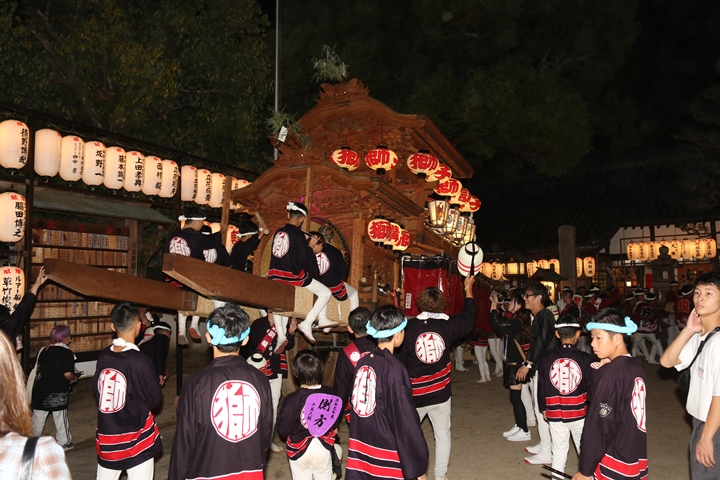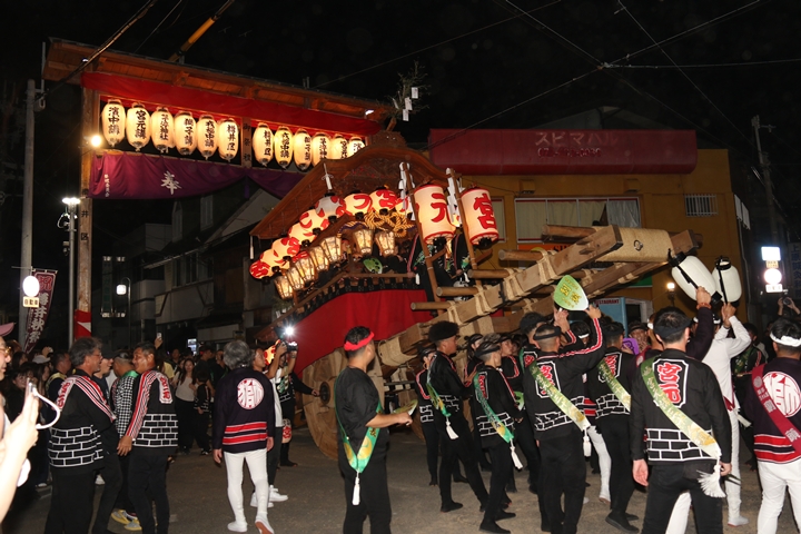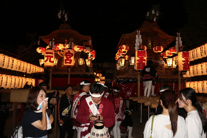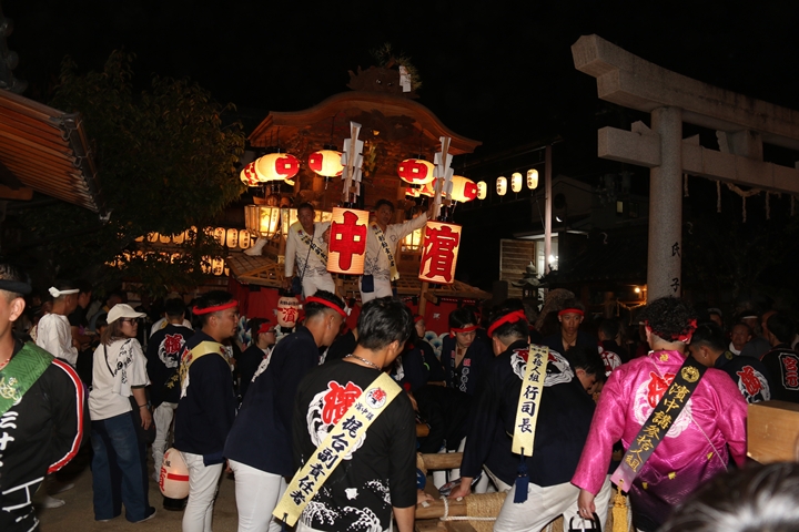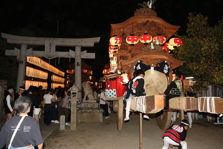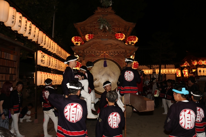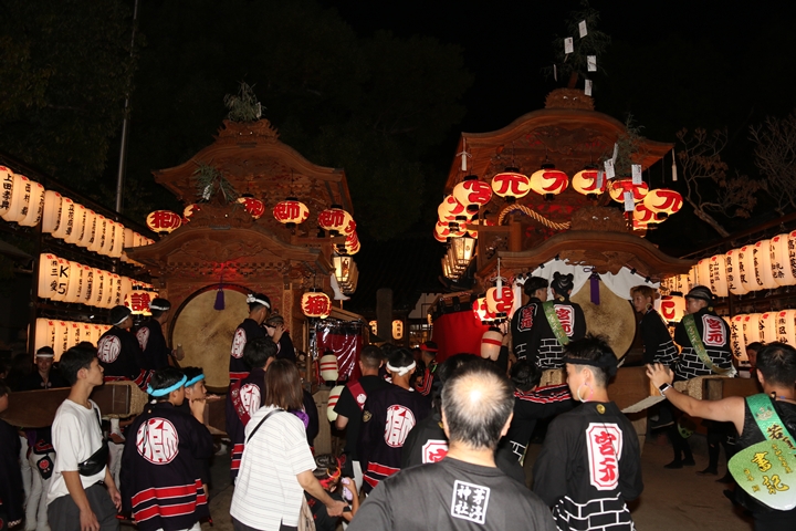![]() 茅渟神社に四講のやぐらが揃いました。 |