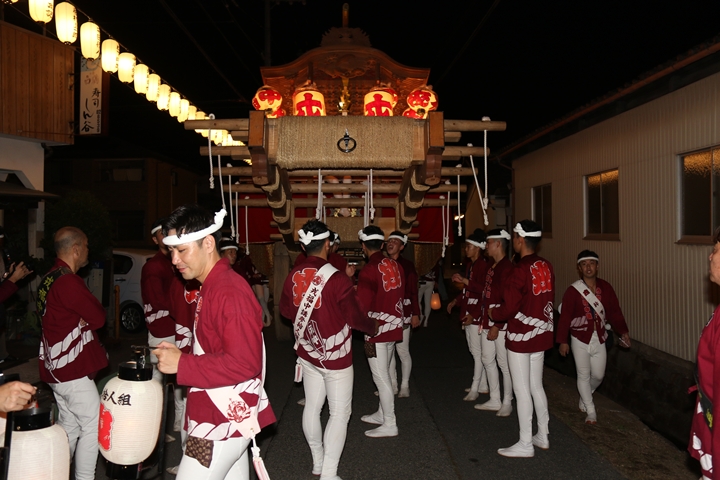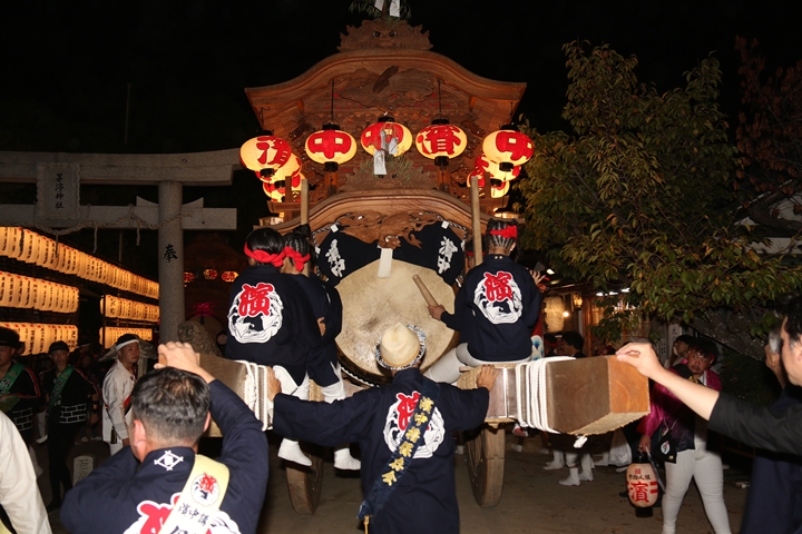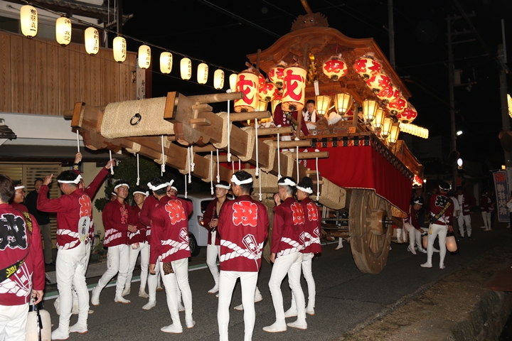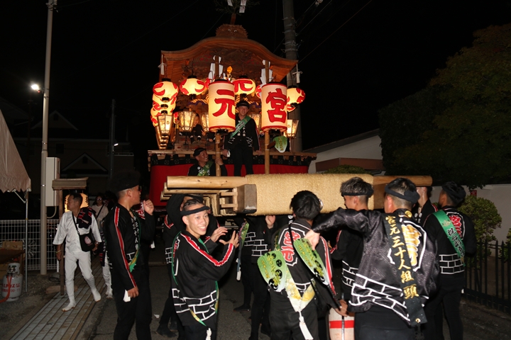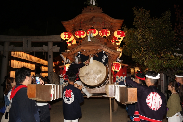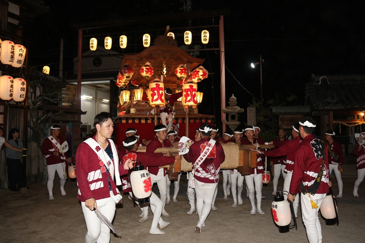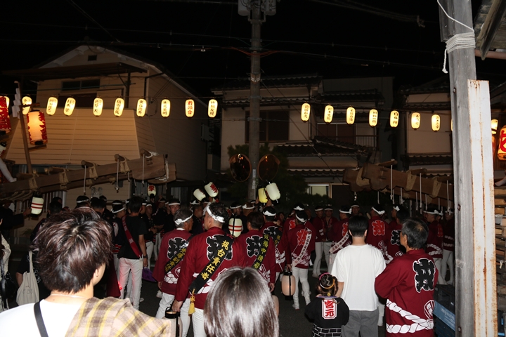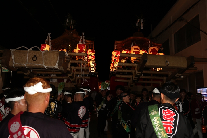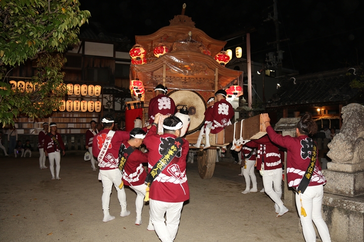 ![]() 茅渟神社に四講のやぐらが揃いました。 |