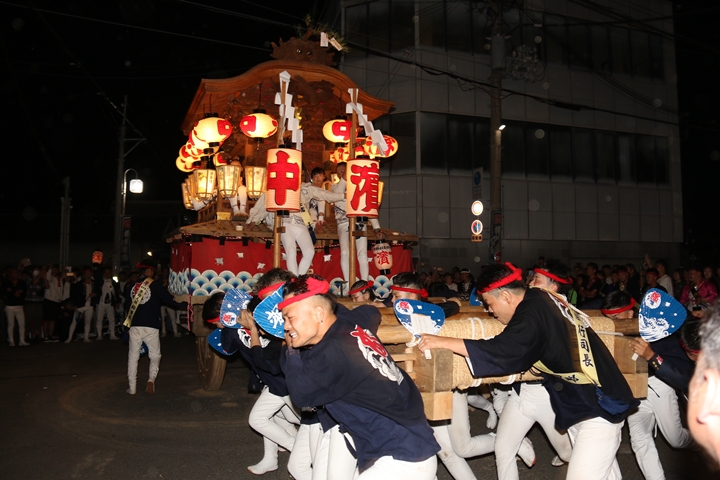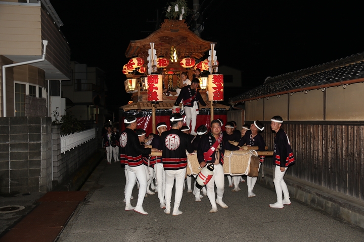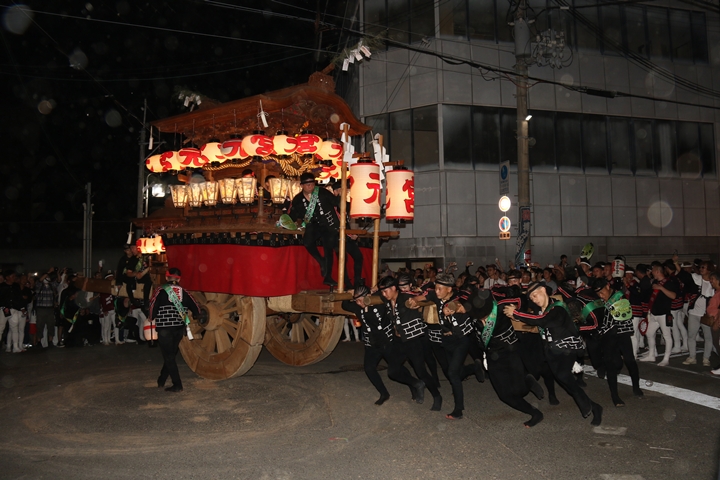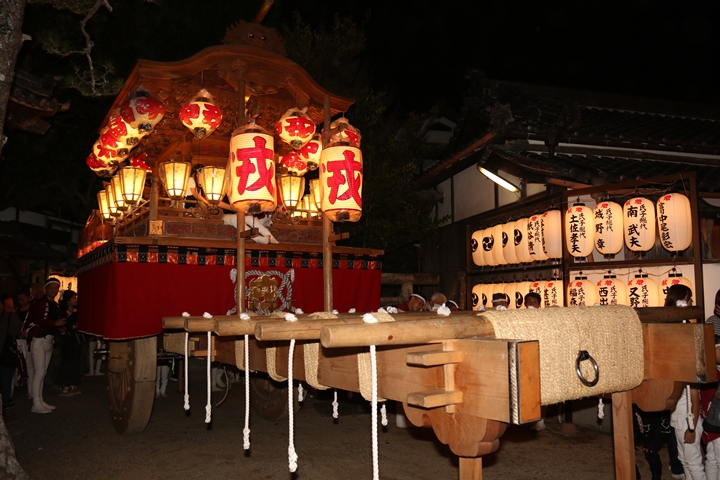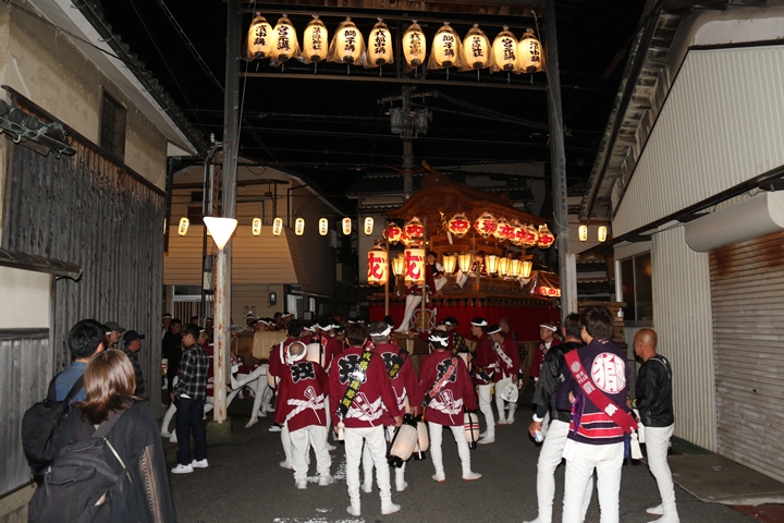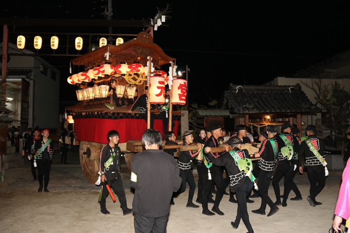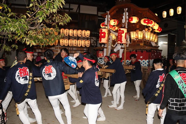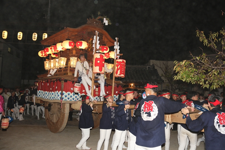![]() まずは戎福中講のやぐらが宮入りします。 |