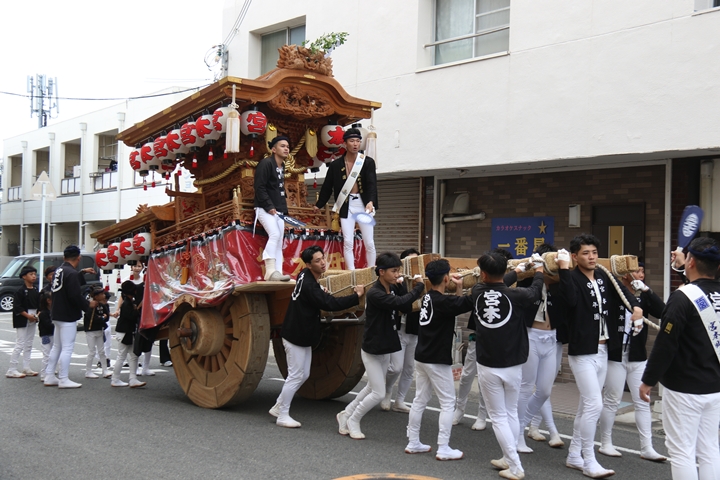 ちょうど尾崎宮本町のやぐらがやって来ました。 |