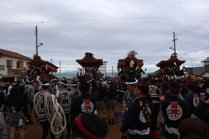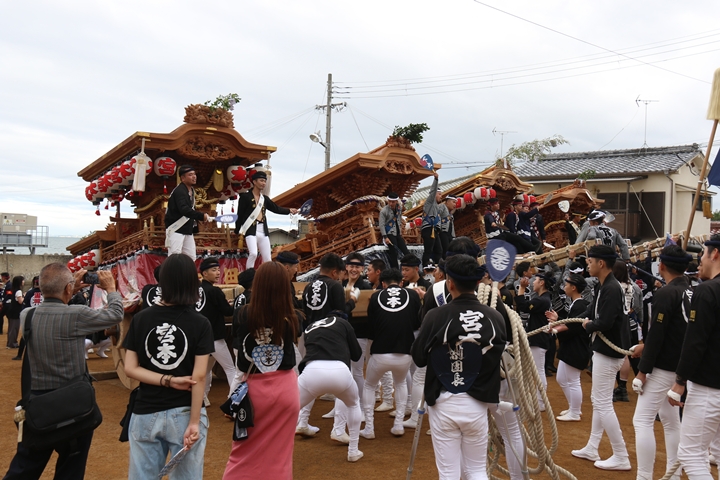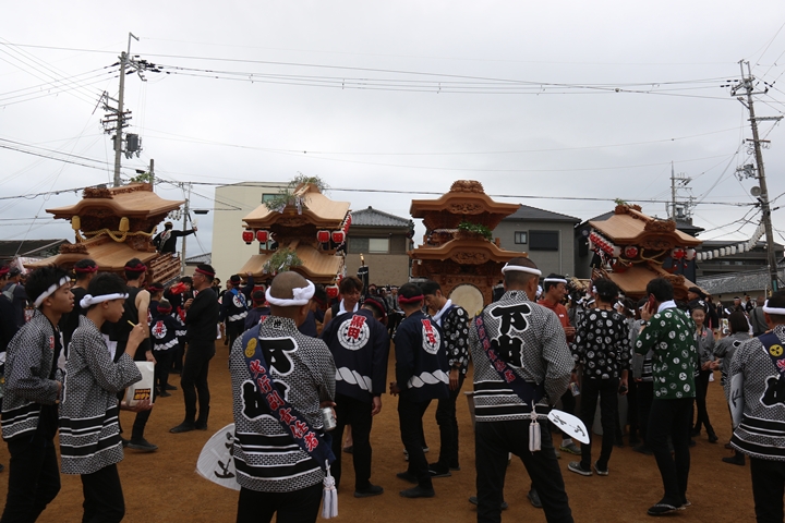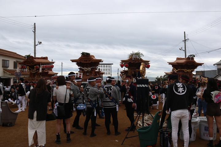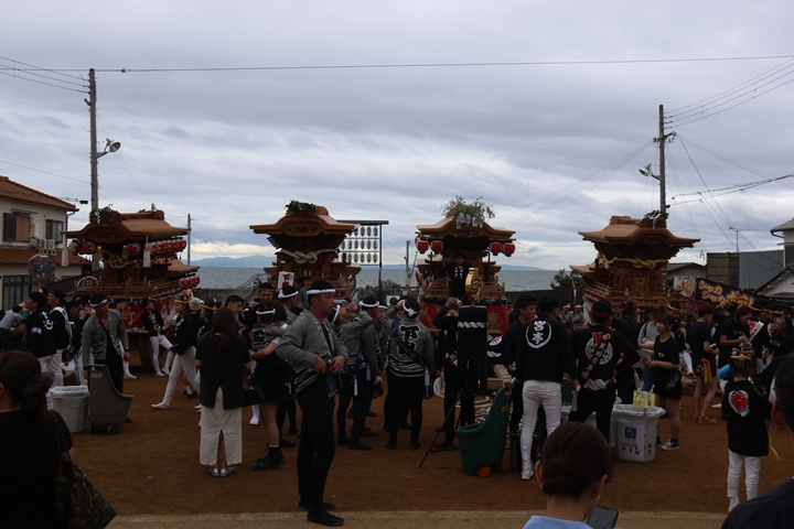 ![]() そして念願だった海老野の並びを撮影します。 今年は新町は神輿渡御だったので四台の並びとなりました。 |