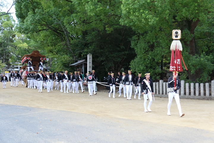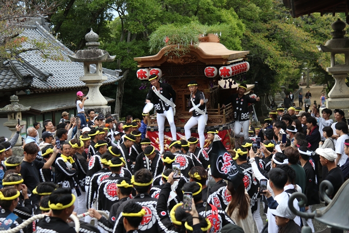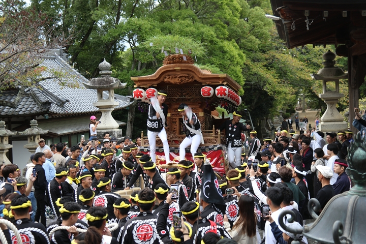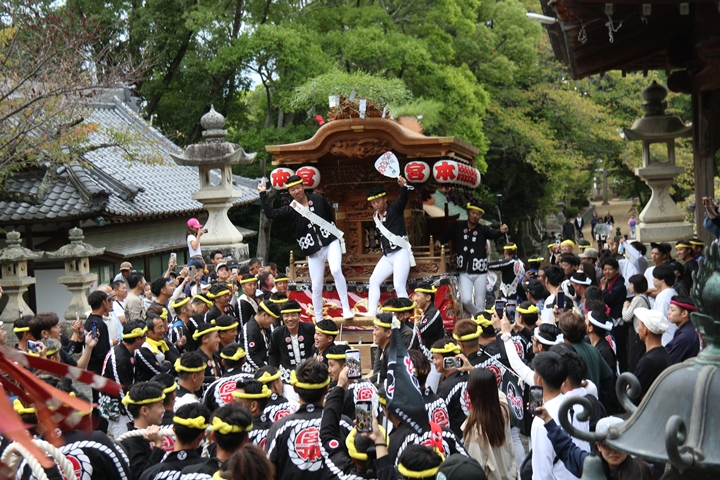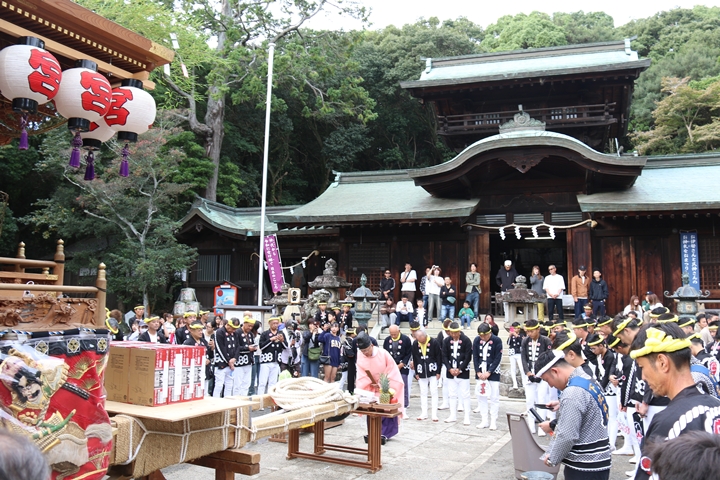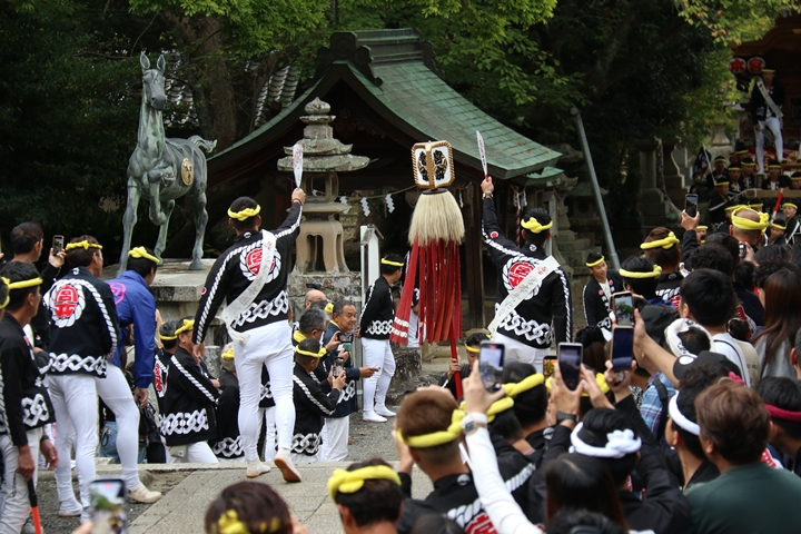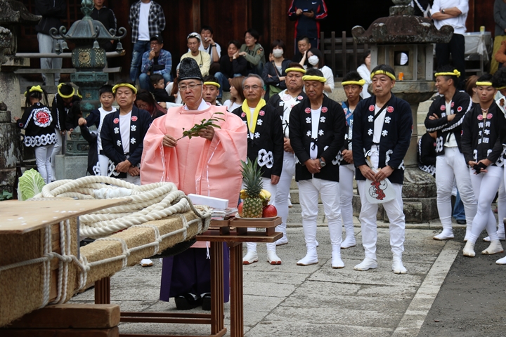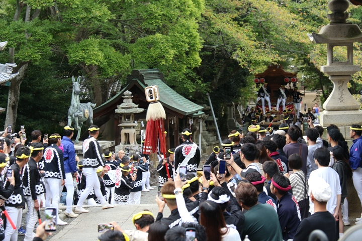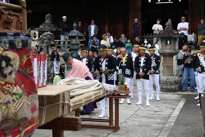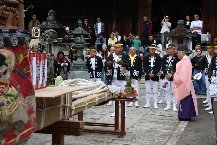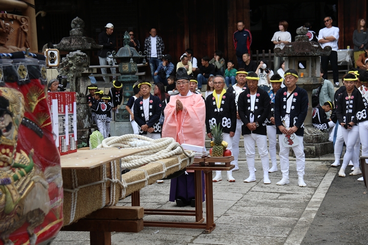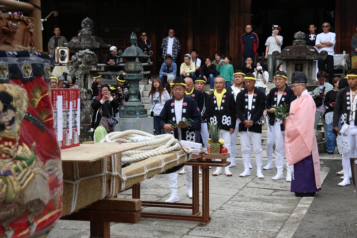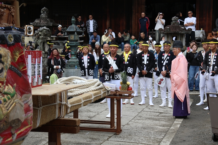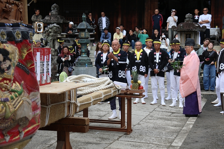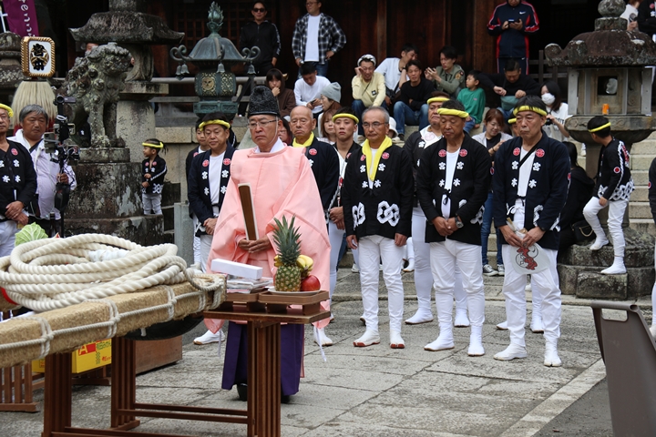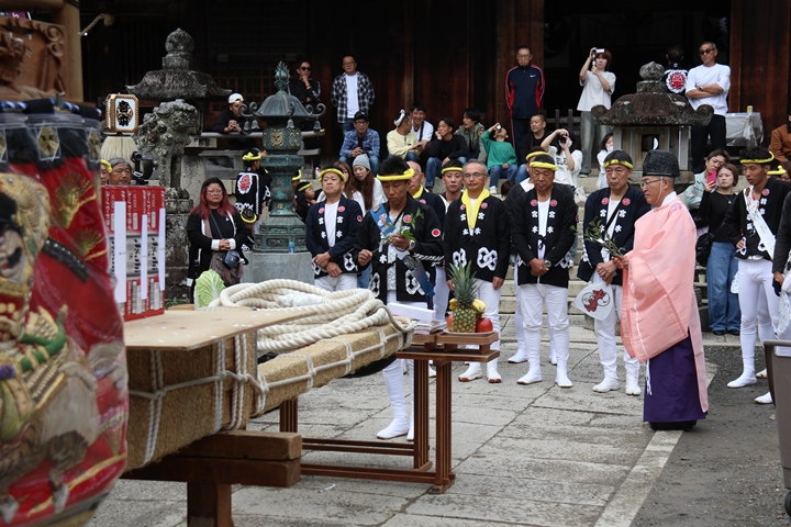 ![]() 私は拝殿前へ移動し場所取り、間もなくやぐらがやって来ました。 |