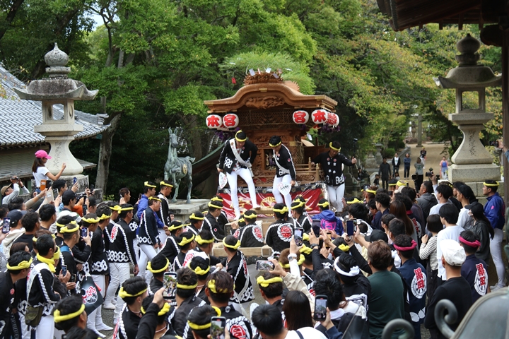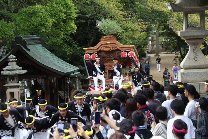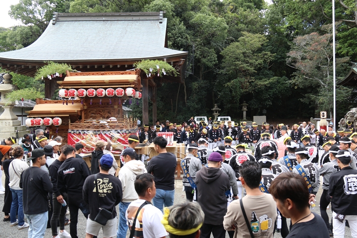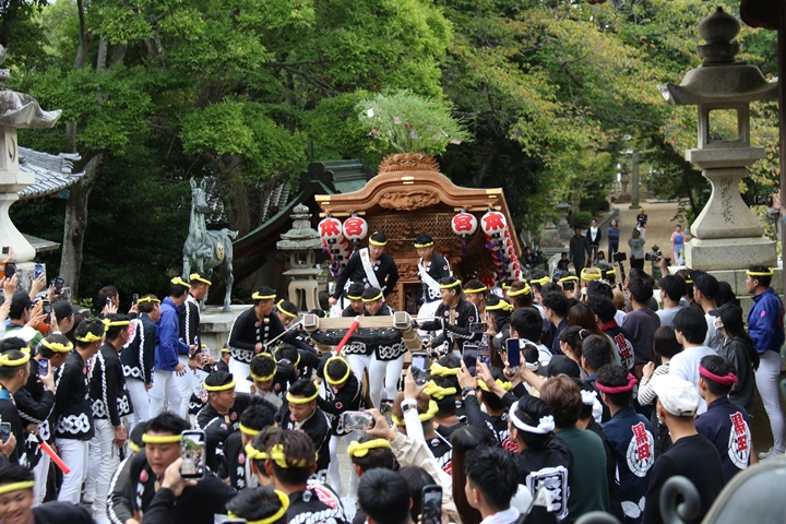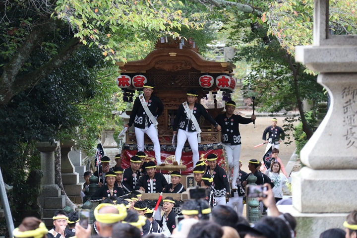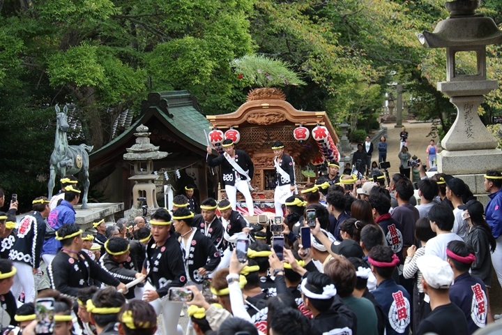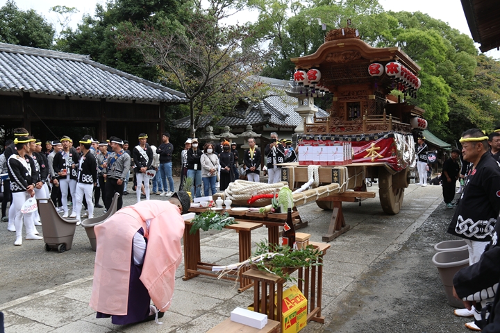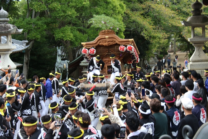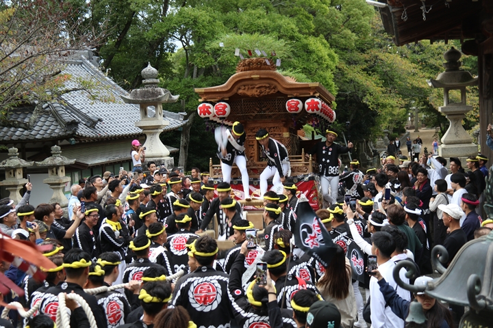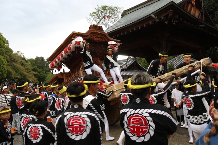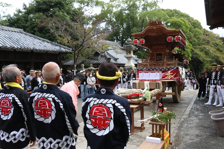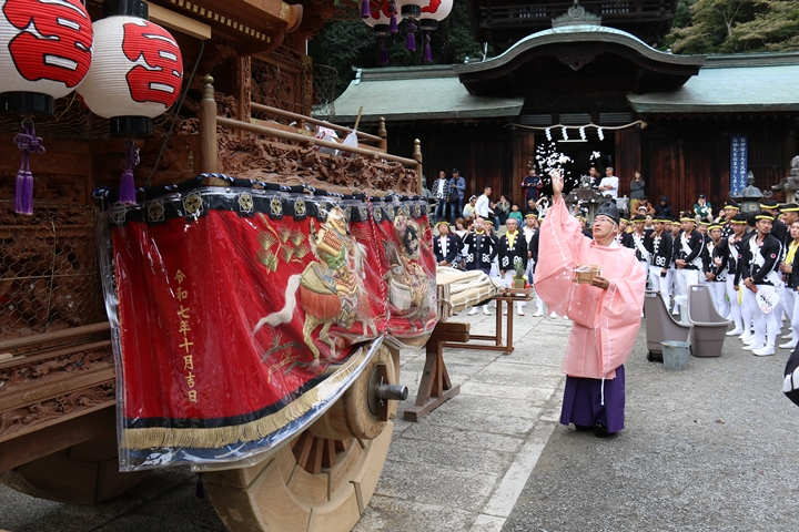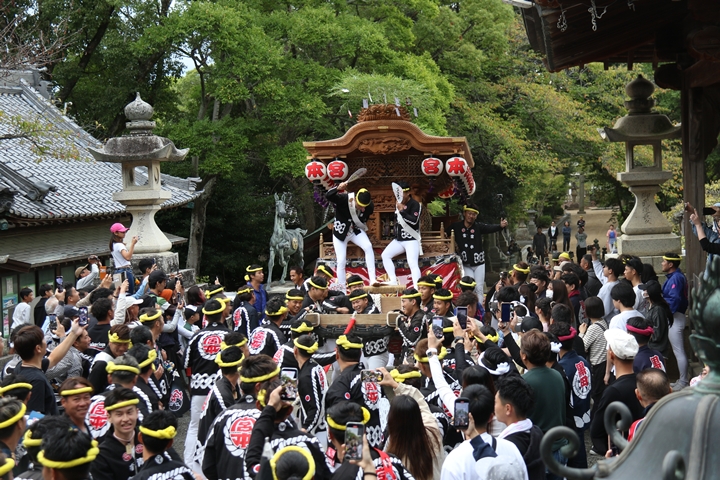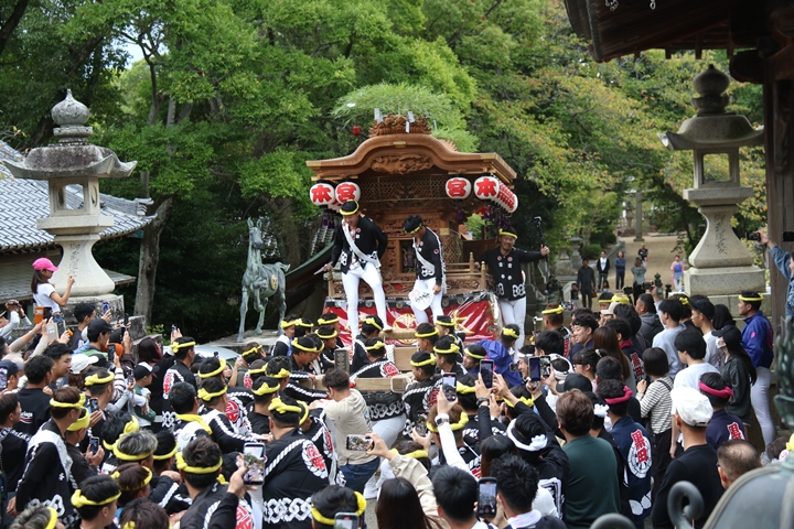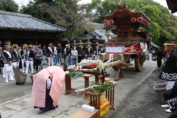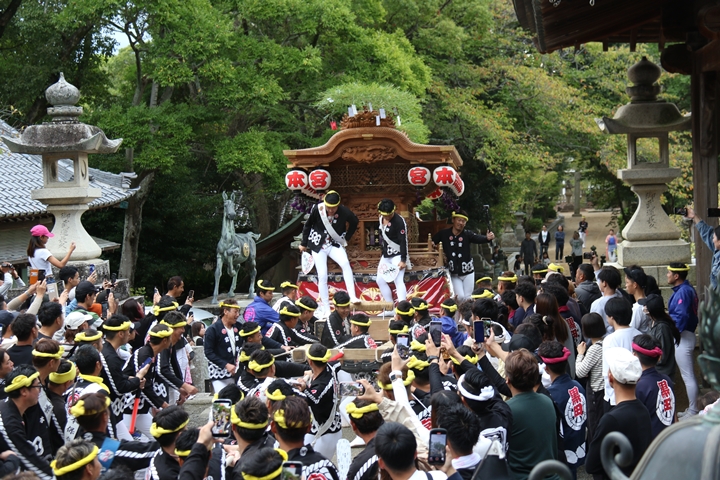![]() 私は拝殿前へ移動し場所取り、間もなくやぐらがやって来ました。 |