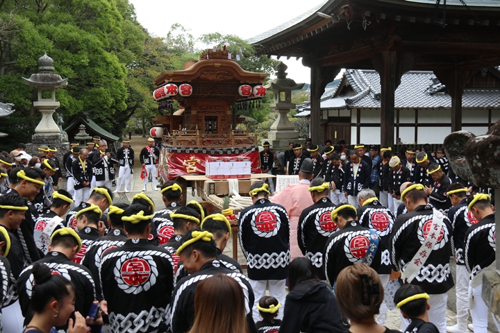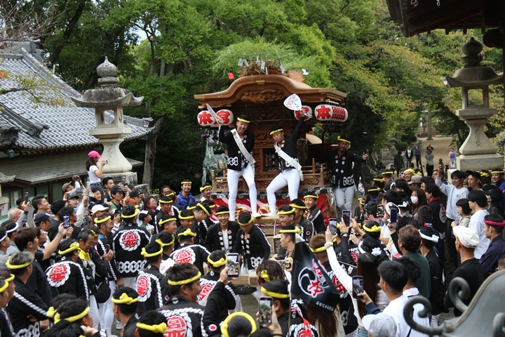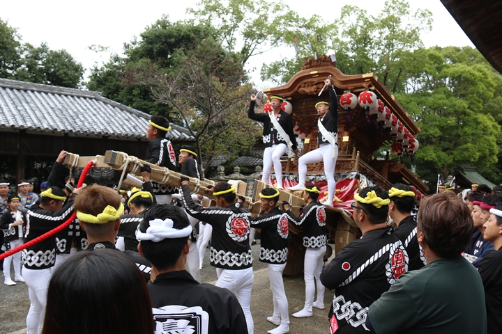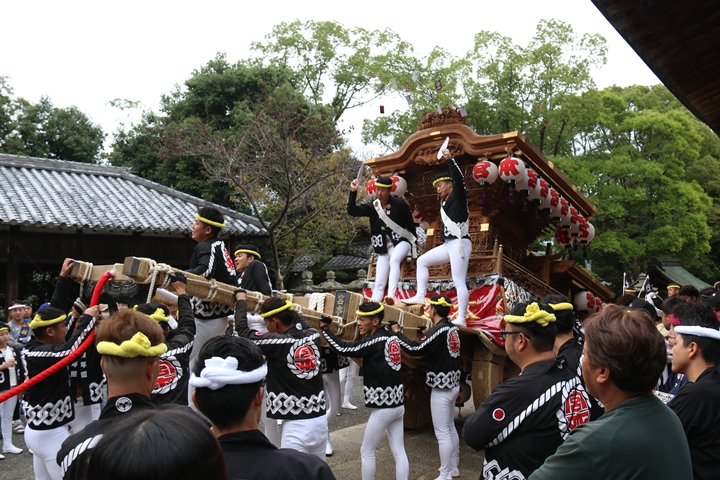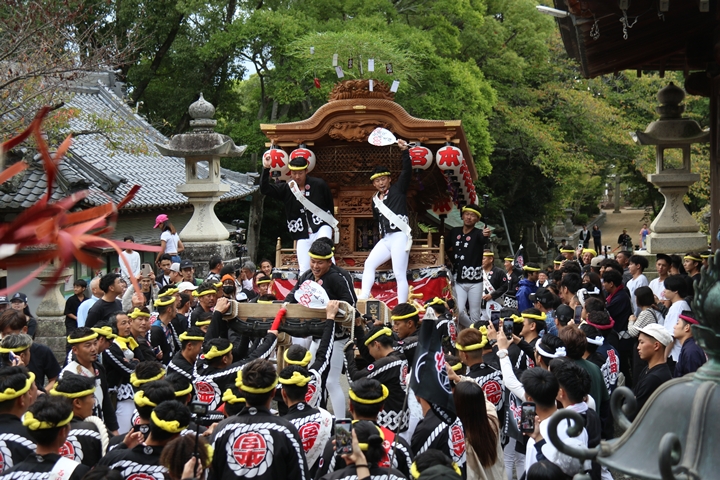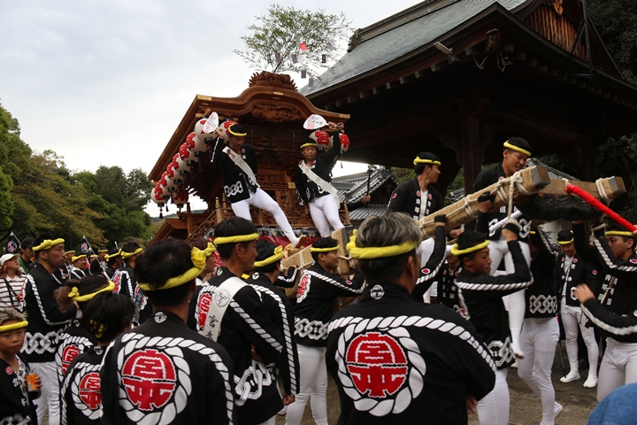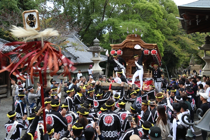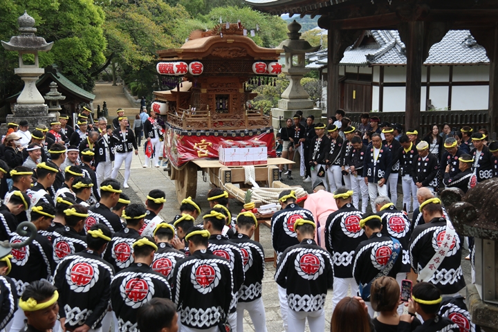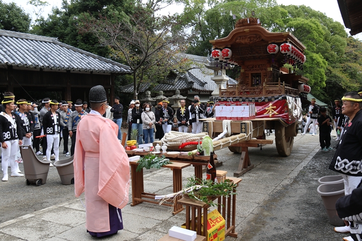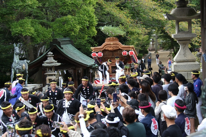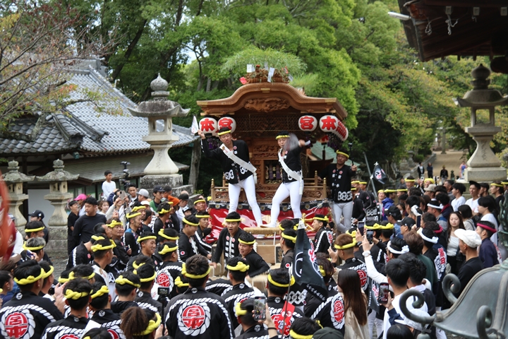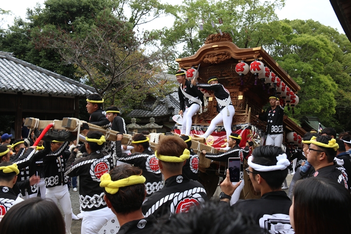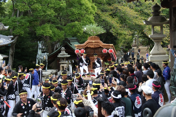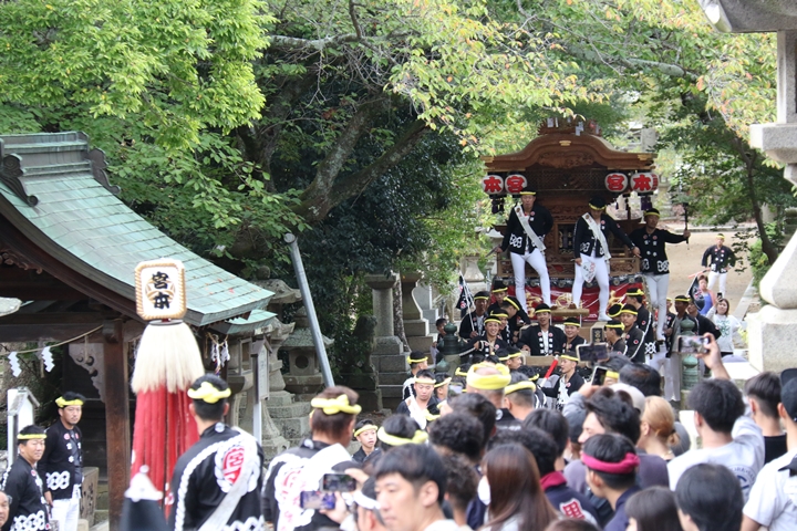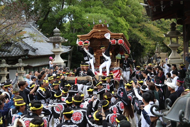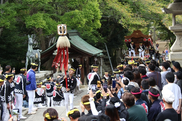 ![]() 私は拝殿前へ移動し場所取り、間もなくやぐらがやって来ました。 |