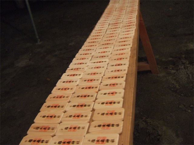2014/8/31 - 波太神社の献燈台![]() ◎ 管理人のだんどり日記 #.36(8月31日日曜日・ )今日は貝塚市・堤と熊取町・小谷のだんじり新調入魂式が行われる日です。小谷はちょっと遠いので堤を見に行こうと思い事前にネットで調べ、和泉鳥取駅5時14分発の始発で行こうと思い、目覚ましを4時にセット。しかし4時に目覚ましは鳴ったが二日酔いから体が全く動かなくて「止めとこう」と即断。だんじりへ行く予定がなくなった今朝、早朝から昨日の寄合の資料を整理し8時過ぎに自治会長Hさん宅へ。昨日の寄合で報告した若頭会イベントのチラシの回覧と掲示板へ貼ることをお願いに。その足で宮総代のKさん宅へ行き、来月中旬から社務所を貸して欲しいとお願いに。 少し昼寝をしてから当ブログの書き込み、"昨日の書き込み"にあります若頭会イベントのPRのため、そのいきさつ等を詳細に書き込んでいたら年番長のNくんから電話があり念書を渡したいとの事。ちょうど夕方に実家へ行く用事があったし、南海バス臨時バス停の案内と若頭会イベントのチラシをラミネートしたかったので夕方住民センターへ行くと返信。行ったら寄附御礼用のタオルがちょうど今日、出来上がったとの事で私も少ないながらも御花をさせて頂き、タオルを頂戴しました。昨年とは若干違うデザイン、明日から年番さんは寄附まわりをするそうなので後日改めてタオルのデザインを御紹介しようと思います。 住民センターの帰り、阪南市内を少し徘徊。尾崎宮本町は既にやぐら部屋前の献燈台が設置されてました。波太神社にも宮入り順の献燈台が設置されており、祭りまでいよいよやなぁって改めて思いました。パレードまでちょうど5週間前、ホンマに忙しくなってきました。 さて1月20日(月)から始めた「管理人のだんどり日記」。一旦今日で終了し、明日からは例年通り祭りまでの約1ヶ月間、私生活をあらわにする期間限定のスペシャル日記を始めようと思います。まぁ〜タイトル変わり、毎日書き込みするだけの違いなんですが…。ともあれ「管理人のだんどり日記」。約7ヶ月間御愛読頂きありがとうございました。 m(__)m |