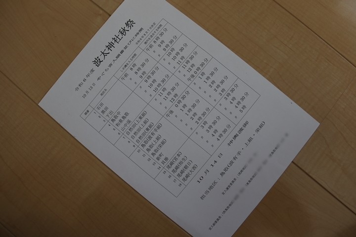 2024/9/12 - 波太神社宮入順番表![]() ◎ 佐野川くんのしんまい日記 (9月12日木曜日・ 訳あって詳細は控えておきますが今日は祭りについてのお話を聞く機会がありました。キーワードは「樫井川・田尻川」、そして「岸和田藩・天領地」。昔から抱いていた謎が解けた気がします。さて先日も書き込みしましたが本来なら8月31日土曜日開催予定だった波太神社氏子総代の寄合が台風10号の影響で今月7日土曜日に延期、そしてその日、Mさんがわざわざ波太神社宮入順番表を届けてくださいました。宮入順番表は下記の通りです。ともあれ今年こそは秋晴れの中、宮入りをしたいですネ。 |