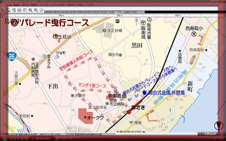 | ● 令和7年10月5日日曜日 − 阪南市やぐらパレード ・15時30分:開会式会場へ入場 ・16時00分:開会式 ・16時30分:パレードスタート ・19時00分:流れ解散 パレード開会式配置図及びパレードコース |