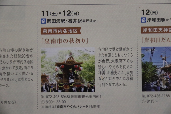 … ![]() ▲ 泉南市の秋祭りとして男里北組のやぐらが掲載されていました。 |