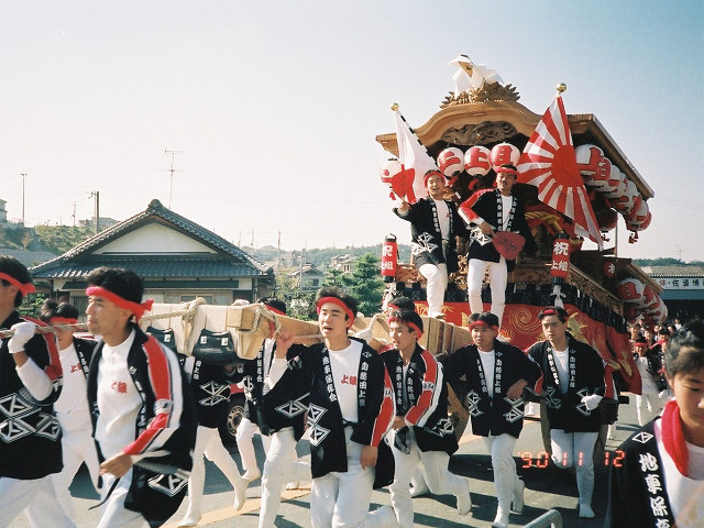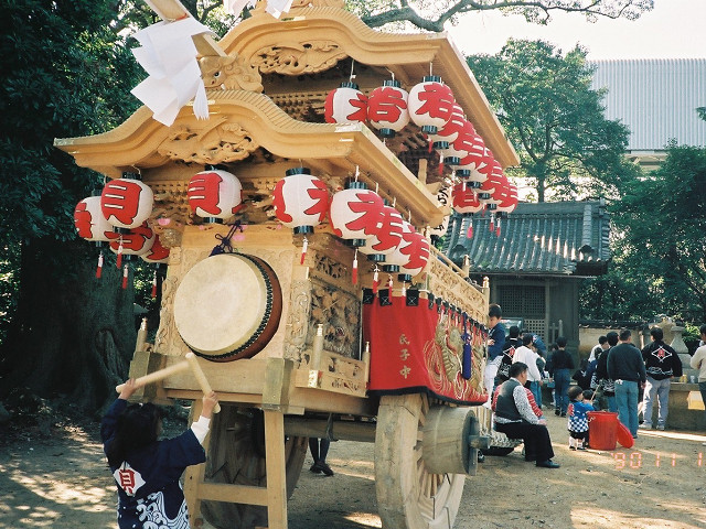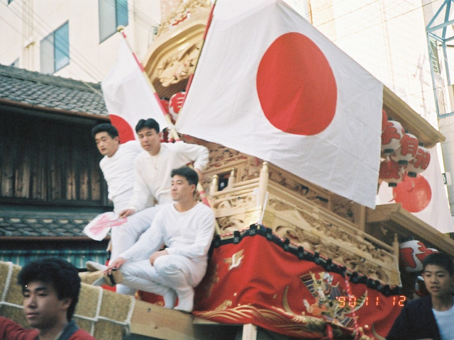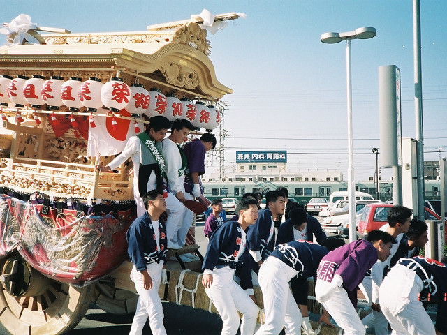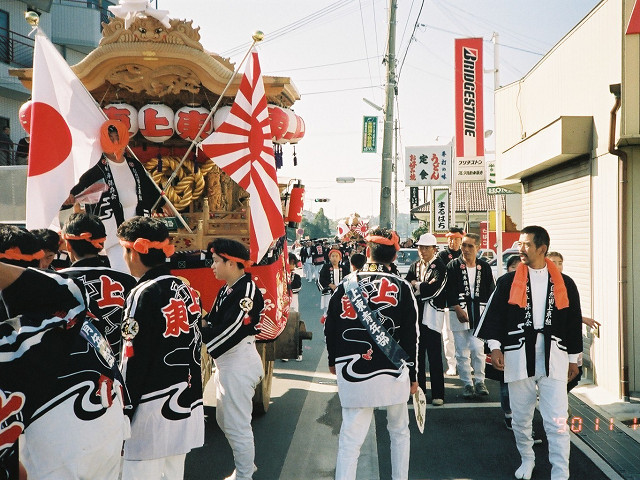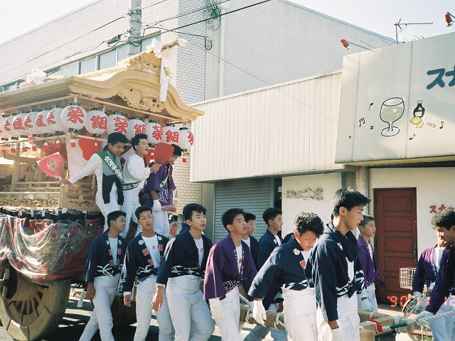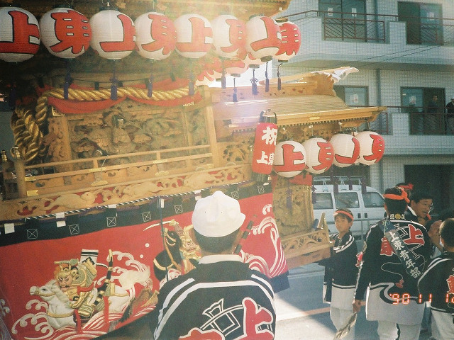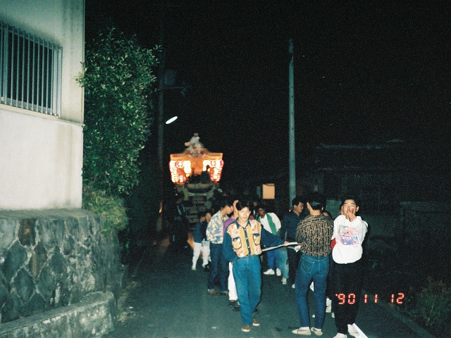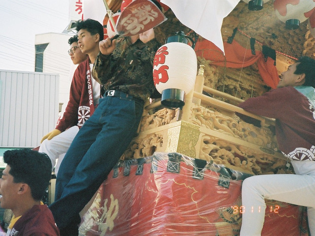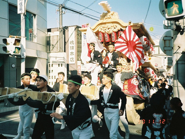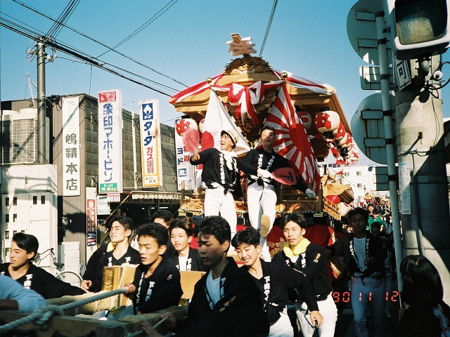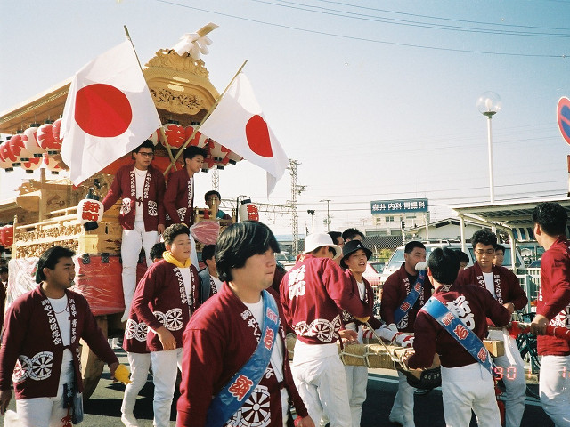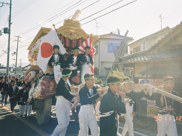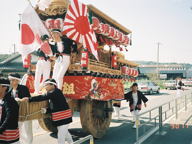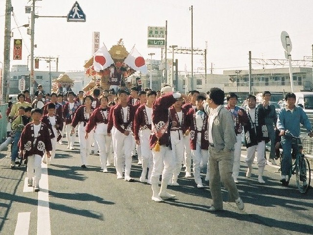 | 今日は今上天皇陛下御在位20年記念日。世間ではお祝いモードで、ウチの会社は金融機関なので、朝から記念硬貨の交換がされてました。ちなみに「平成」に元号が変わったのが平成元年(1989年)1月8日(日)、御即位の礼が行われたのが平成2年(1990年)11月12日月曜日、今日の記念日は御即位の礼の日にちなんでの祝賀行事なんです。 で、今から19年前の平成2年11月12日(月)、阪南市でも御即位の礼を記念しやぐらを曳行しました。管理人が把握してる範囲では貝掛,西鳥取上組,榮組,波有手組,新町,石田宮本,黒田,下出,鳥取中,自然田上組,自然田東組,自然田上東組,朝日町,大西町,尾崎宮本町の15町がやぐらを曳行。箱作東,箱作西は曳行せず、和泉鳥取,山中渓は不明、相生町は復活前。管理人も我が貝掛を曳きながら、休憩時間に他町へ撮影に行ってました。当事は高校1年生、自転車テクテクこいでの移動です。 今日は天皇陛下御在位20年を記念し、「地車研究」と題して「天皇陛下御即位の礼に伴う記念曳行」の模様を時系列で御紹介しようと思います。 |