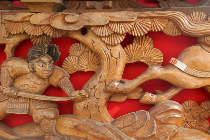 と題して先代・自然田上組の彫物を御紹介します。今日は大屋根板勾欄左面を御紹介します。申し訳ありませんが彫物の題材は不明…、もしお解かりになられたら是非ともお教え下さいませ。