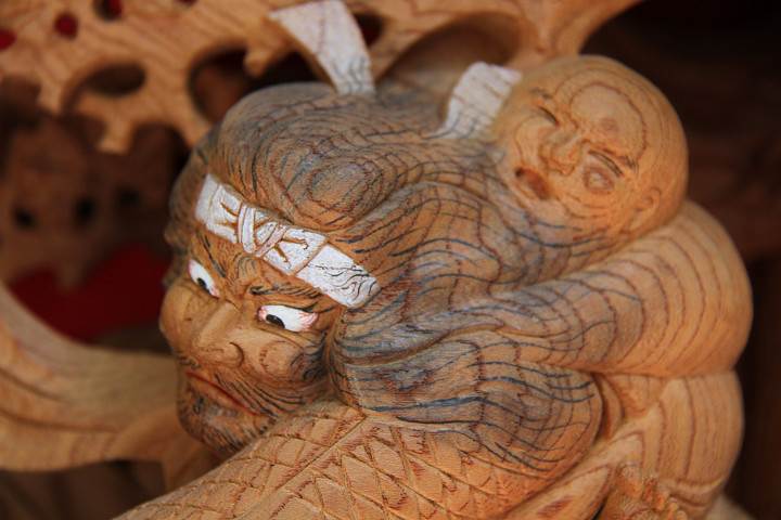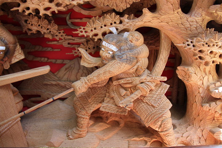 (^^ゞ汗 ともあれ彫物画廊にて【全制覇】したのは和泉鳥取,自然田上東組,大西町,岡田西組,男里南組,岡田北組,先代・自然田東組,北野,大苗代,市場に続いて11台目です。 最終回の今回は小屋根幕板左面の題材である「半田寺山」を御紹介します。小屋根幕板左面は以前、コンデジで撮影した画像を御紹介済ですが一眼レフカメラで撮影した画像を改めて御紹介しようと思います。その前にまずは「半田寺山」の題材について。 |