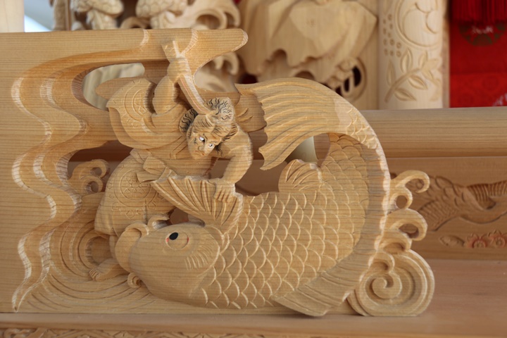 | ◆ 彫物画廊 feat. 自然田東組 #.20 (彫物画廊通算 #.417) 彫物題材:西塔鬼若鯉退治 / 大屋根上犬勾欄正面左 |