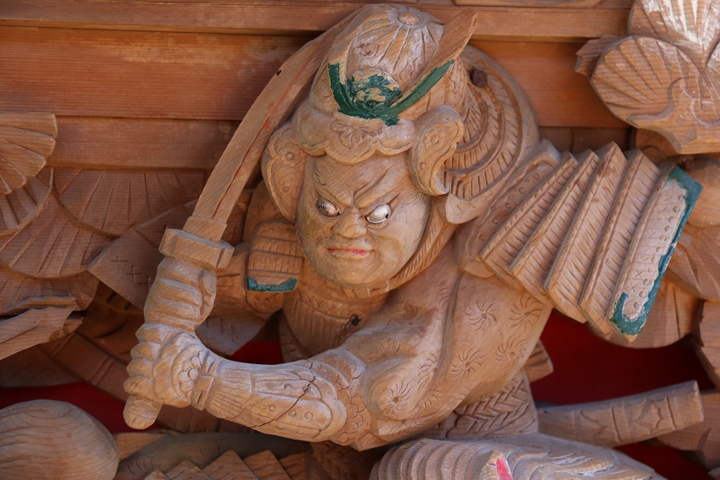 と題して先代・山中渓の彫物を御紹介します。今回は大屋根幕板左面を御紹介します。申し訳ありませんが彫物の題材は不明…、もしお解かりになられたら是非ともお教え下さいませ。
