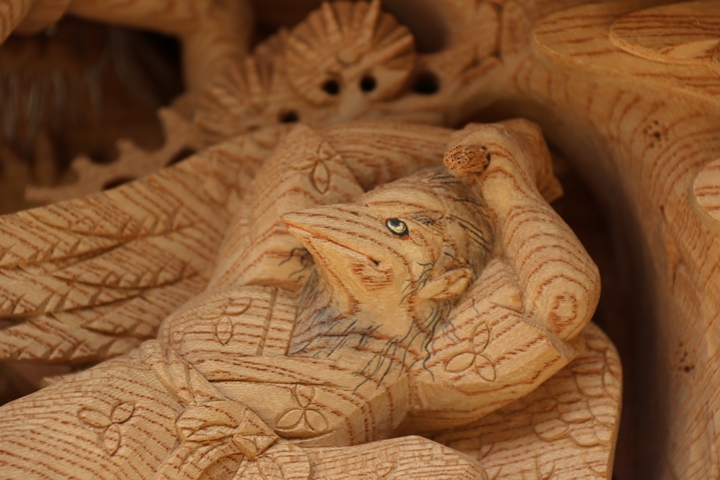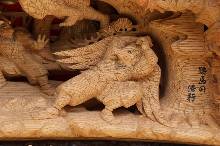 | ◆ 彫物画廊 feat. 山中渓 #.11 (彫物画廊通算 #.539) 彫物題材:鞍馬の修行 / 小屋根桝合正面 |
