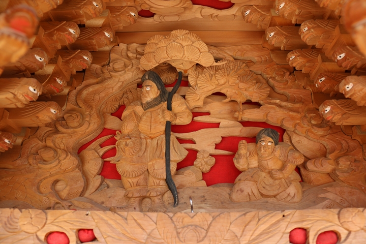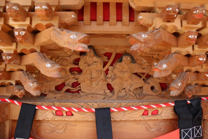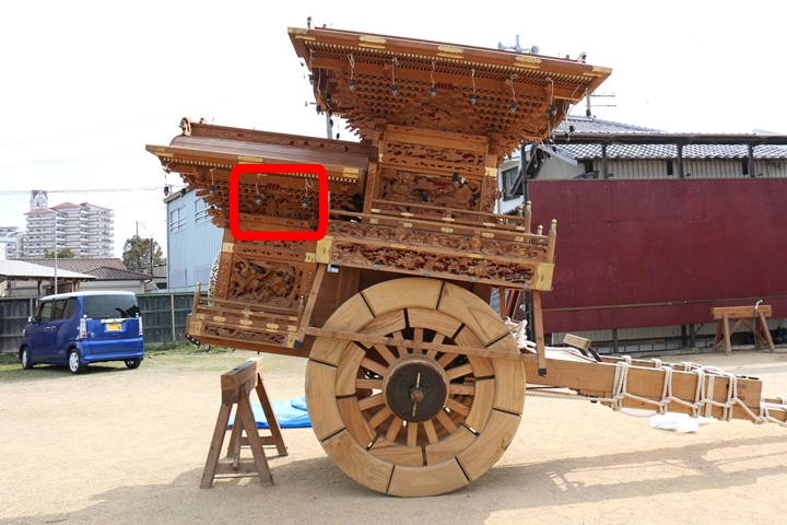 と題して先代・新町の彫物を御紹介します。今回は小屋根桝合右面を御紹介します。申し訳ありませんが彫物の題材は不明…、もしお解かりになられたら是非ともお教え下さいませ。
