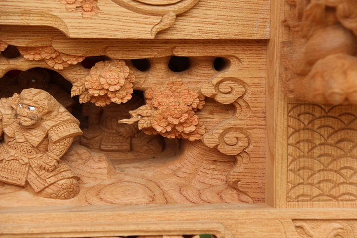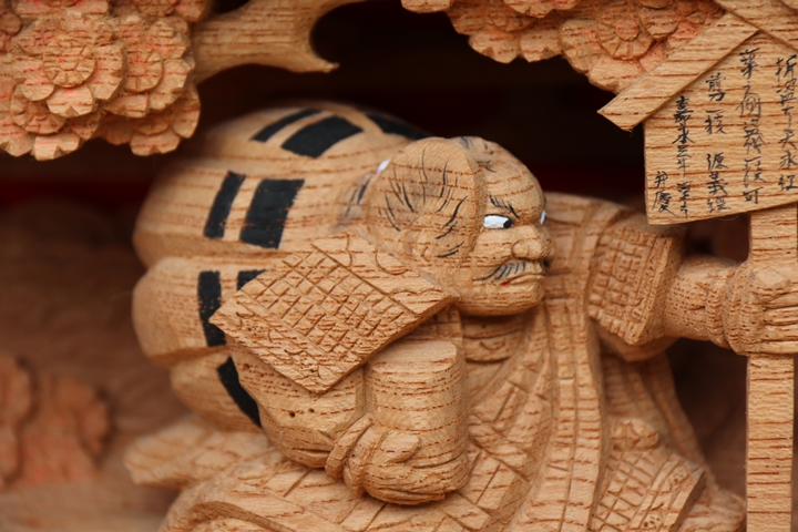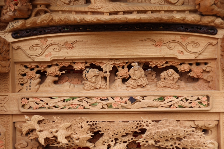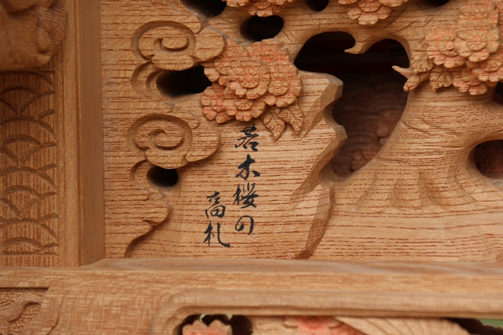 | ◆ 彫物画廊 feat. 山中渓 #.19 (彫物画廊通算 #.565) 彫物題材:若木桜の高札 / 小屋根欄間左面 |