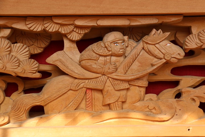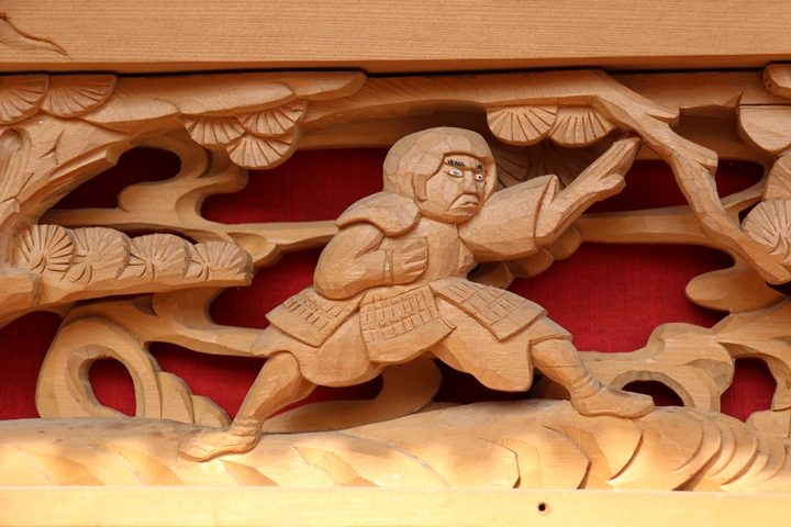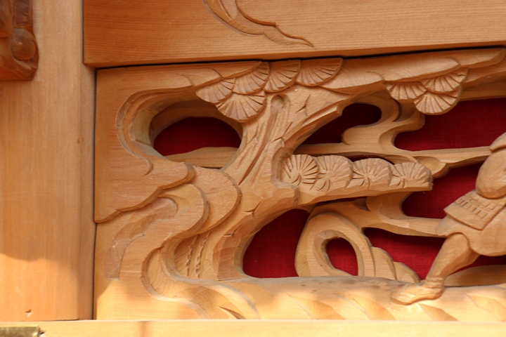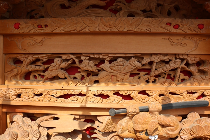 と題して先代・新町の彫物を御紹介します。今回は大屋根欄間右面を御紹介します。申し訳ありませんが彫物の題材は不明…、もしお解かりになられたら是非ともお教え下さいませ。