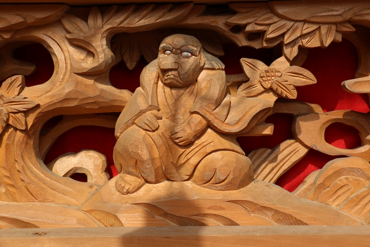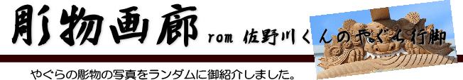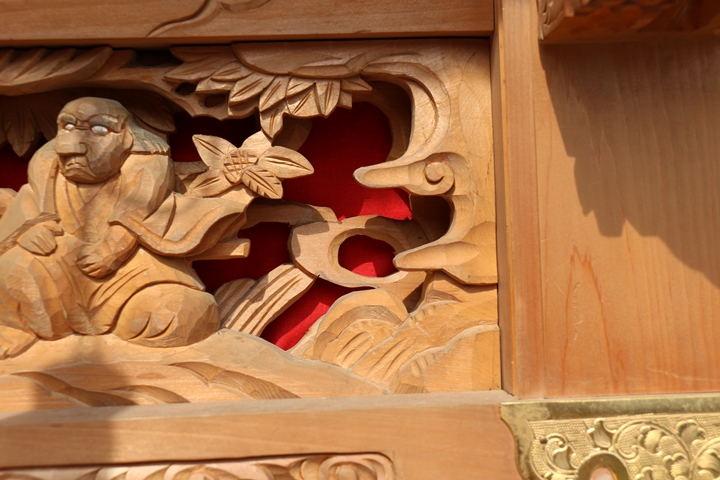 | 前回に引き続き「彫物画廊」と題して先代・新町の彫物を御紹介します。今回は小屋根欄間左面の題材である「天孫降臨」を御紹介します。その前にまずは「天孫降臨」の題材について。 |