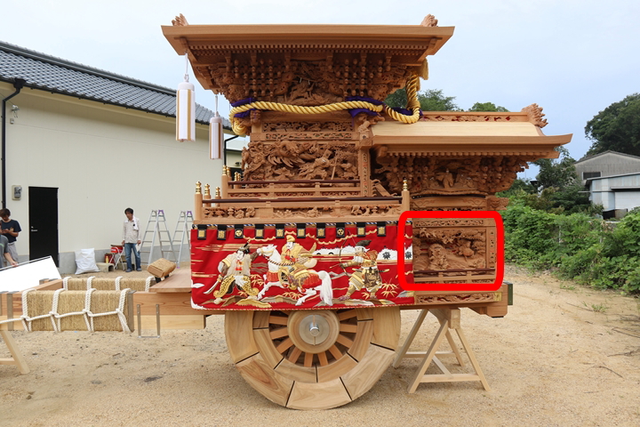 | ◆ 彫物画廊 feat. 山中渓 #.23 (彫物画廊通算 #.574) 彫物題材:敦盛を呼び戻す / 小屋根幕板左面 |