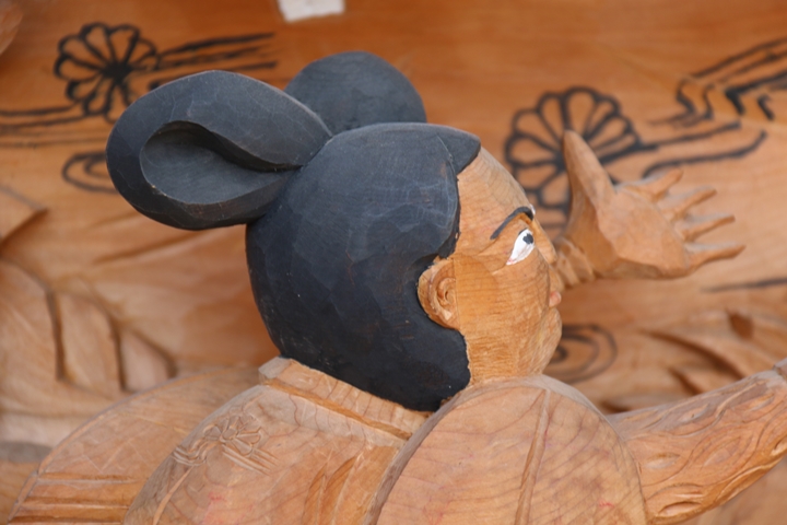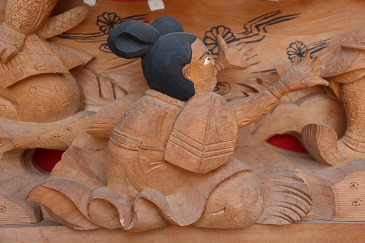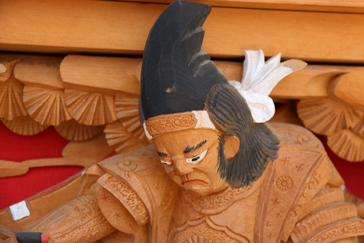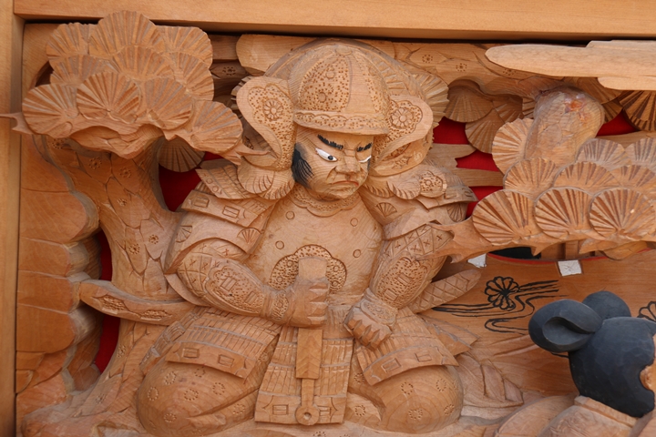 | 前回に引き続き「彫物画廊」と題して先代・新町の彫物を御紹介します。今回は大屋根幕板左面の題材である「楠公父子 桜井の別れ」を御紹介します。その前にまずは「桜井の驛」の題材について。 |
