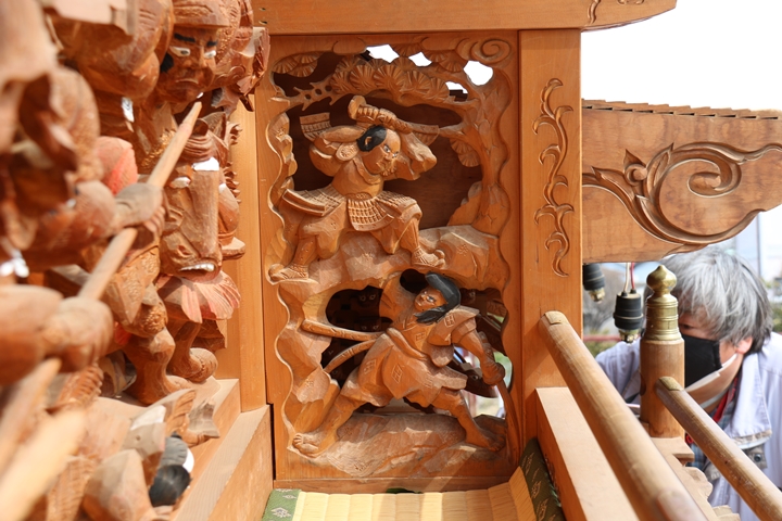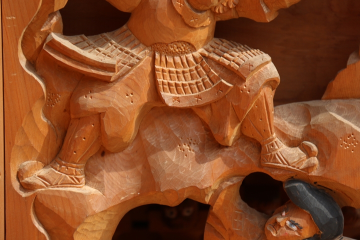 と題して先代・新町の彫物を御紹介します。今回は大屋根脇障子右面を御紹介します。申し訳ありませんが彫物の題材は不明…、もしお解かりになられたら是非ともお教え下さいませ。