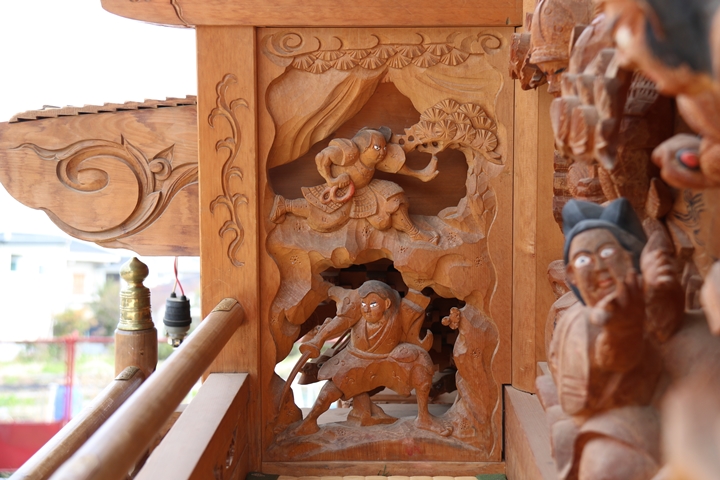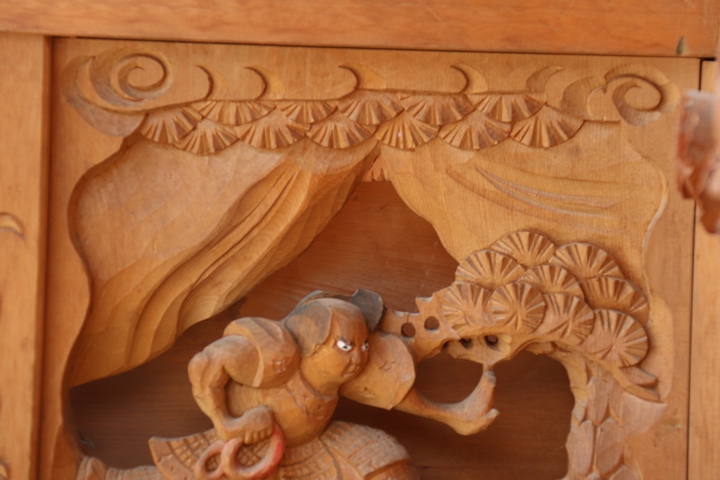 と題して先代・新町の彫物を御紹介します。今回は大屋根脇障子左面を御紹介します。申し訳ありませんが彫物の題材は不明…、もしお解かりになられたら是非ともお教え下さいませ。